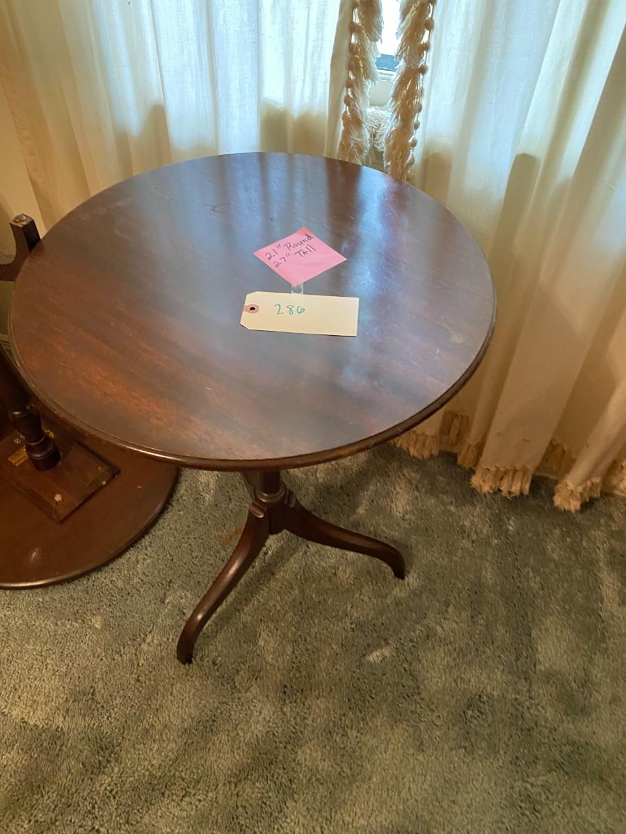LOT 286 Pr of Round Antique Accent Tables, Tops Need Refinishing, 21x27t
