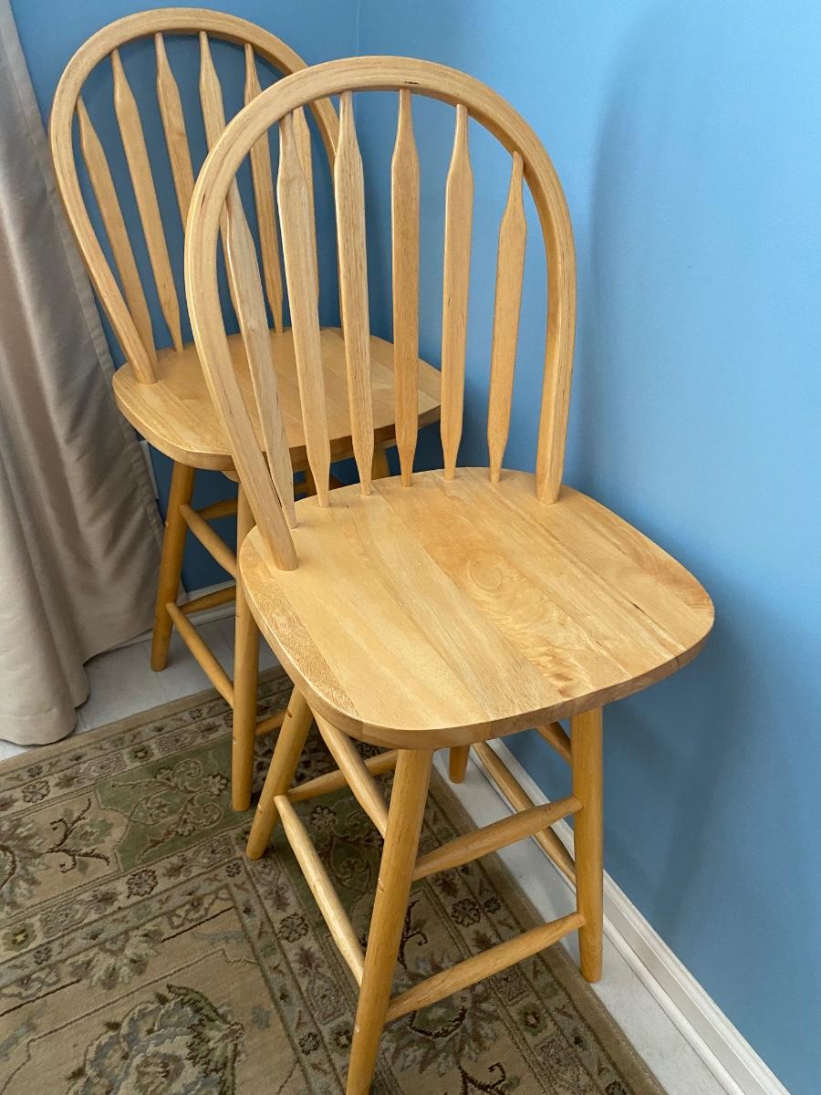 Pr of Light Wood Swivel Bar Stools in Excellent Condition, 42x18x17