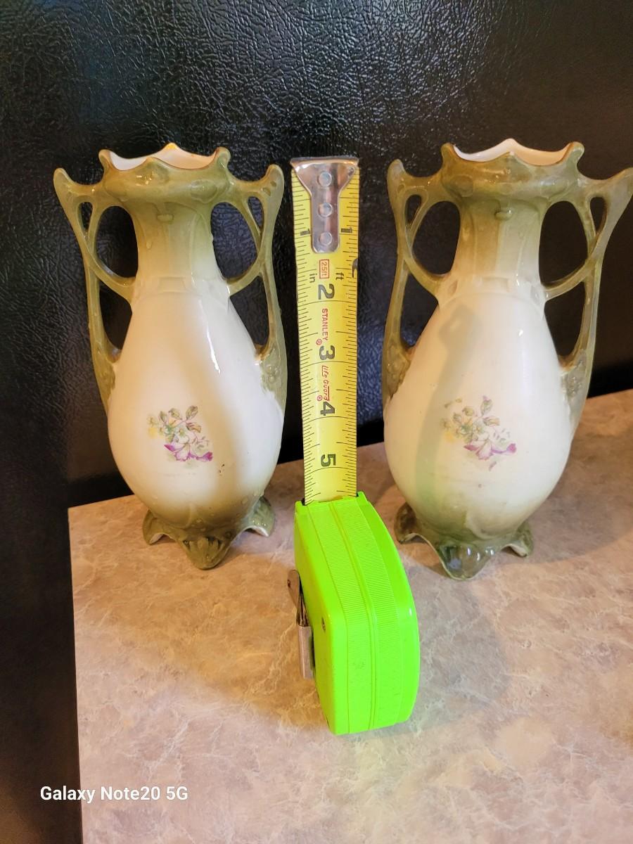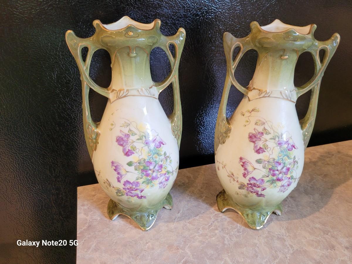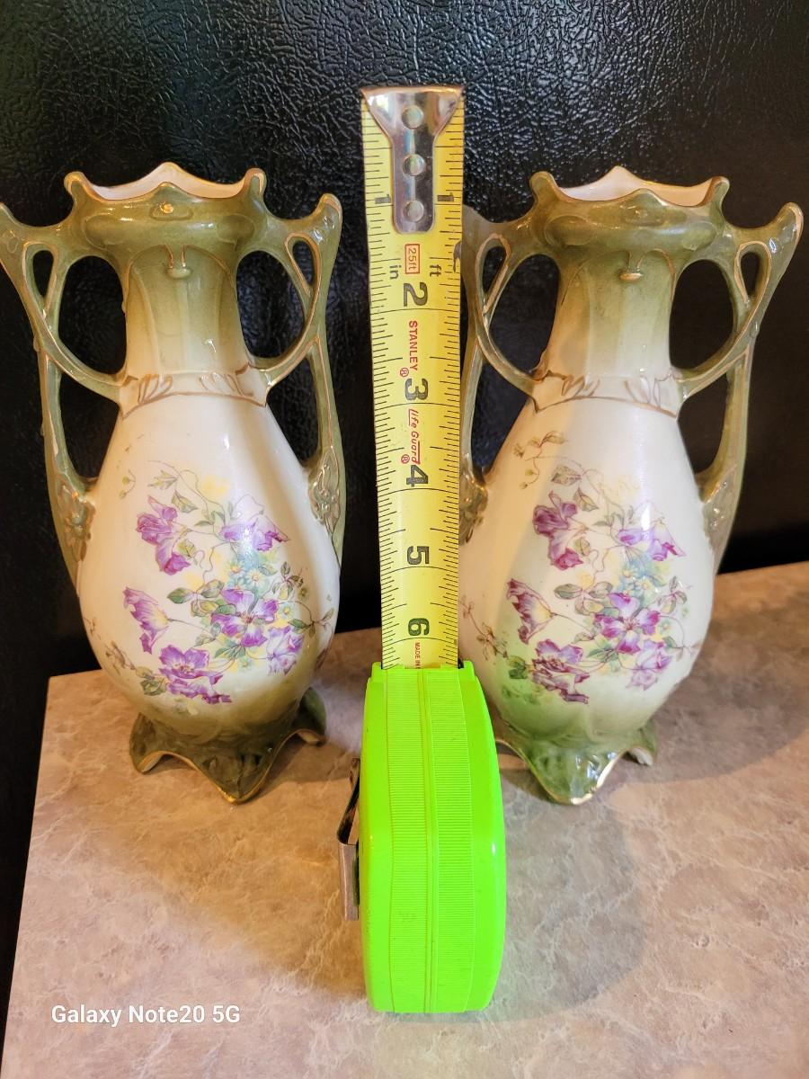 Nice pr 9" Royal Teplitz Austrian Porcelain Vases. No chips. Very good condition.