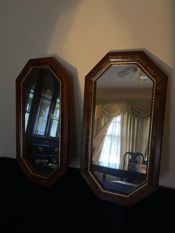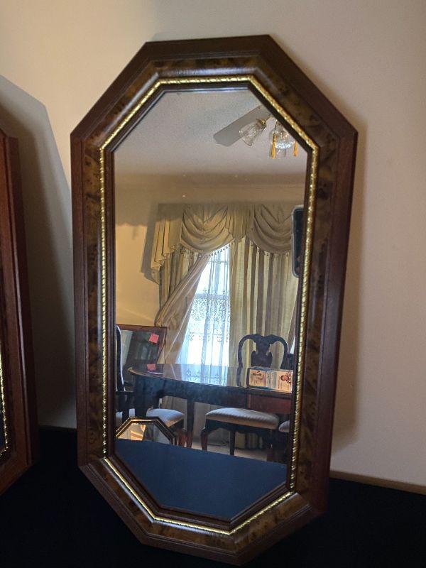 Pr Small Wood Wall Mirrors with Gold Trim 23x12