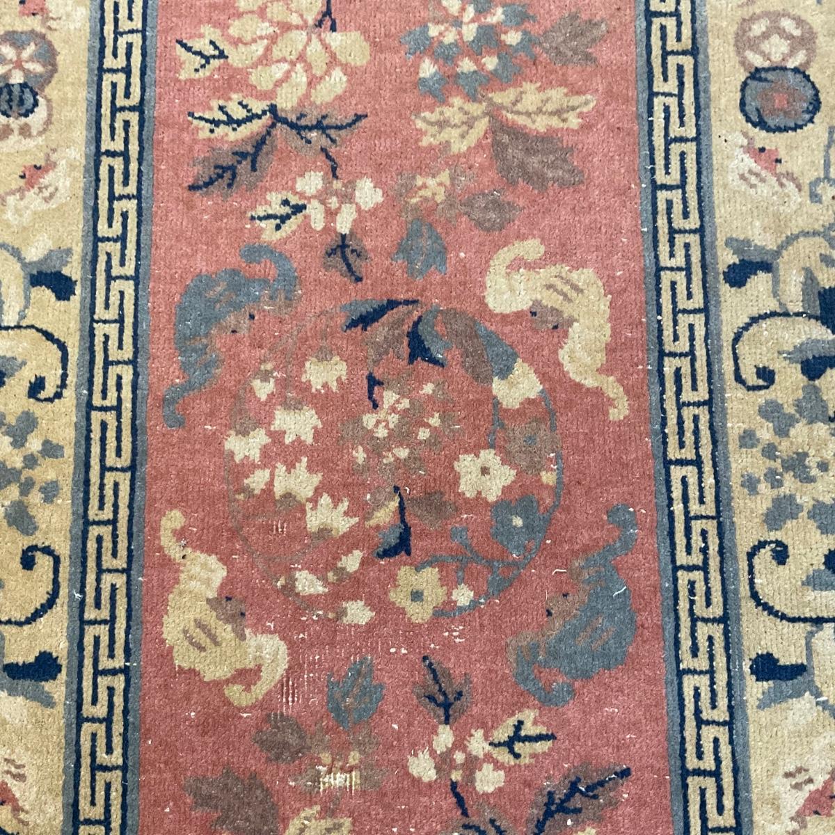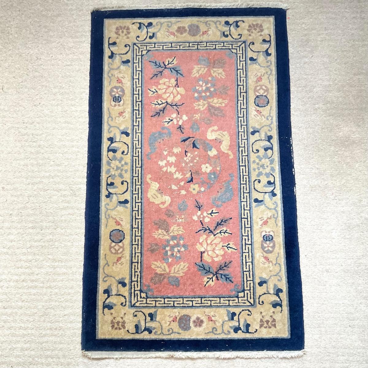 Pink and blue with depictions of girls circling around flowers, Has some stain spots please refer to photos.