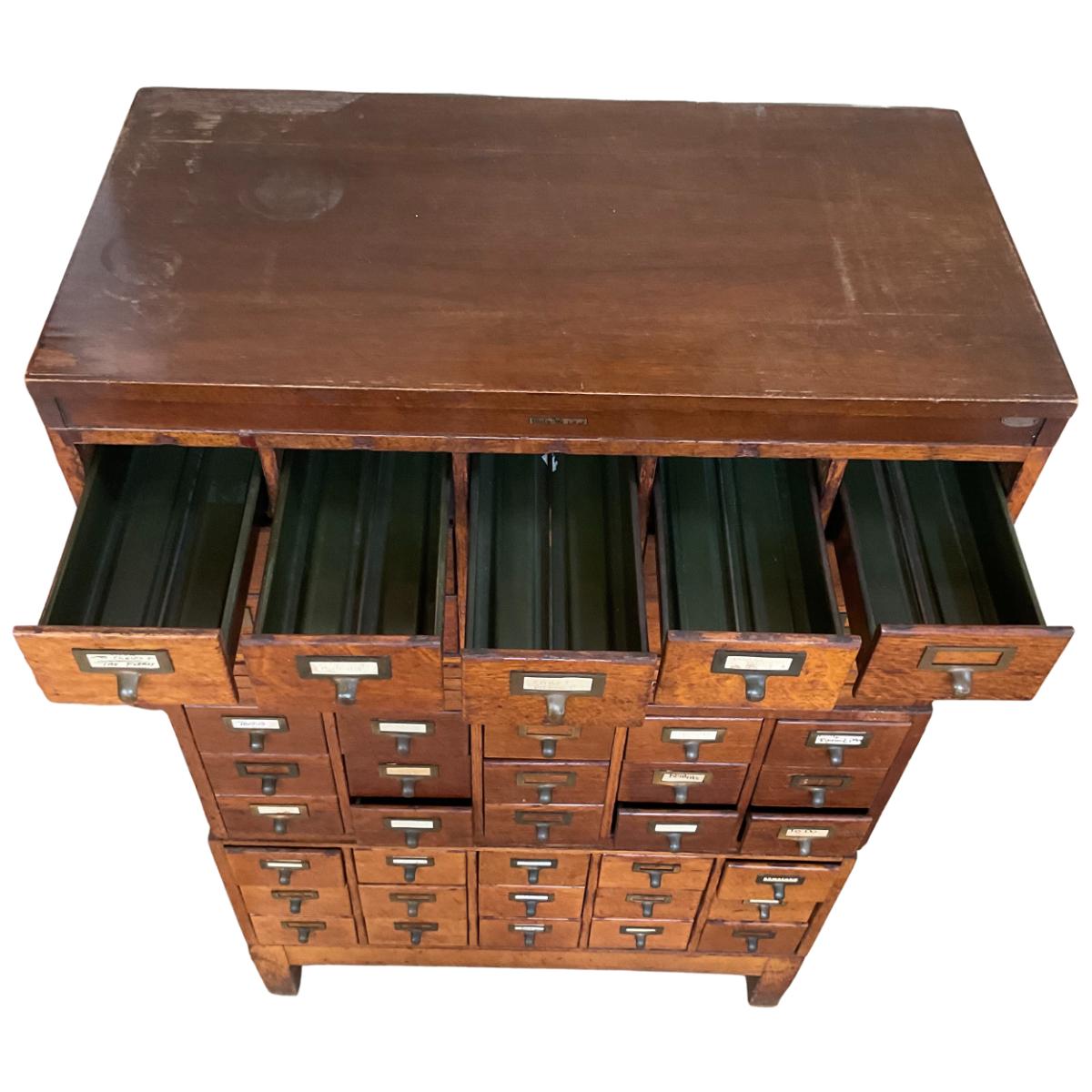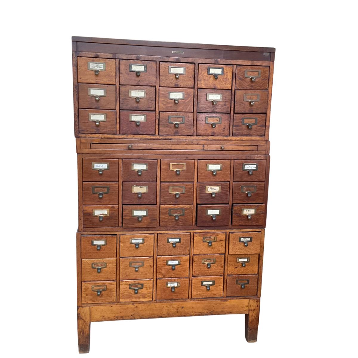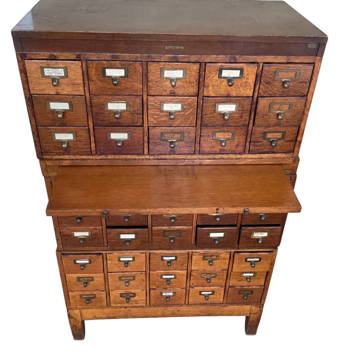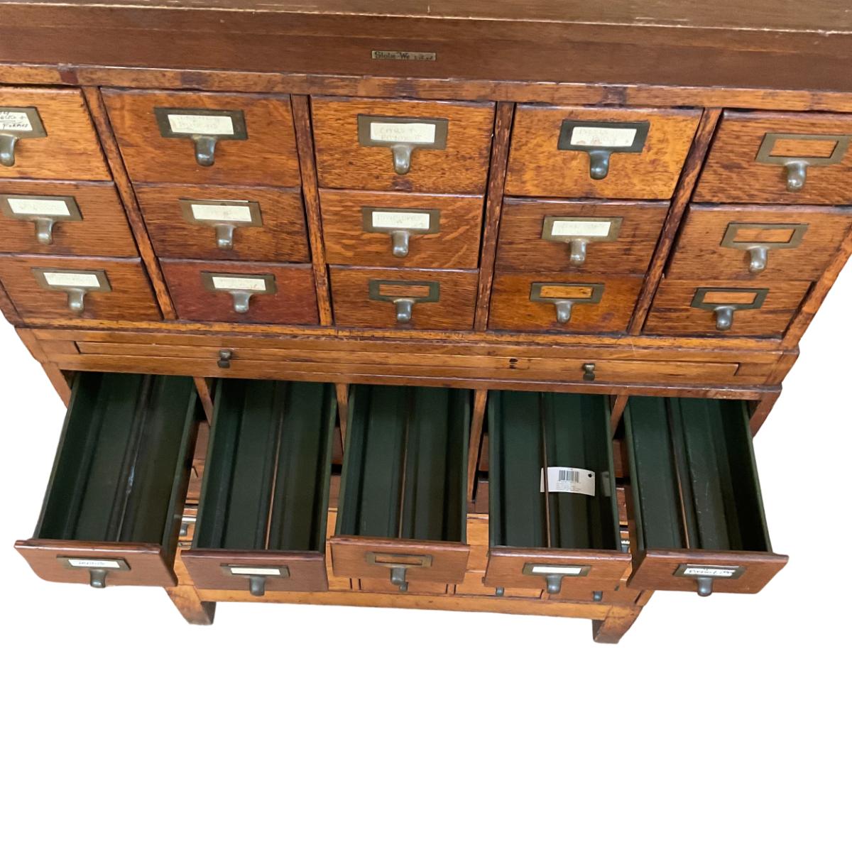 PR32 Vintage Oak Apothecary Library Catalog Filing Cabinet