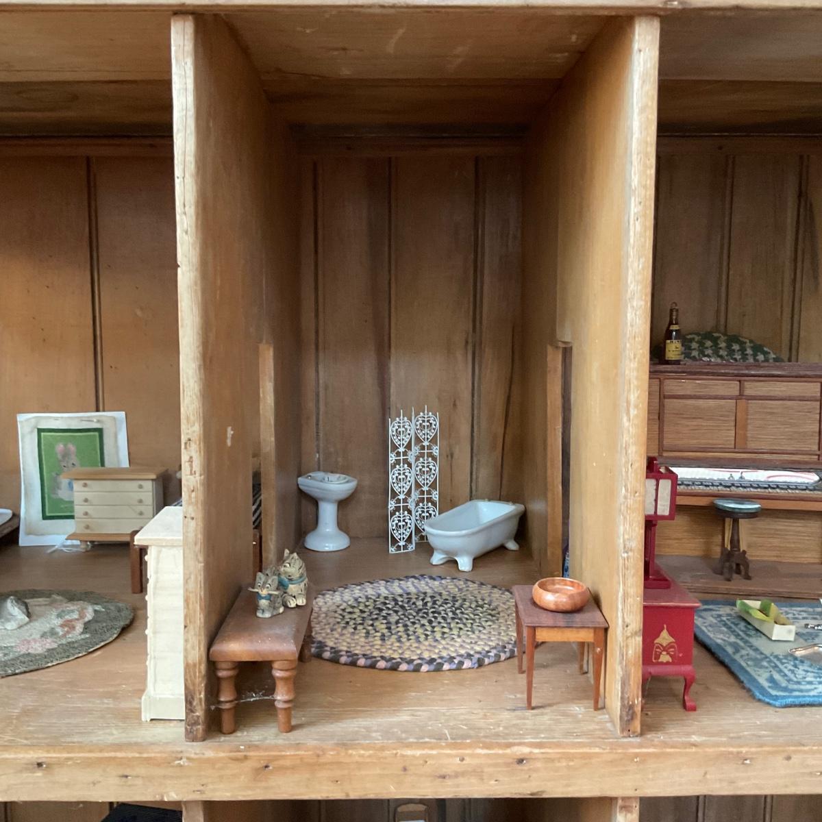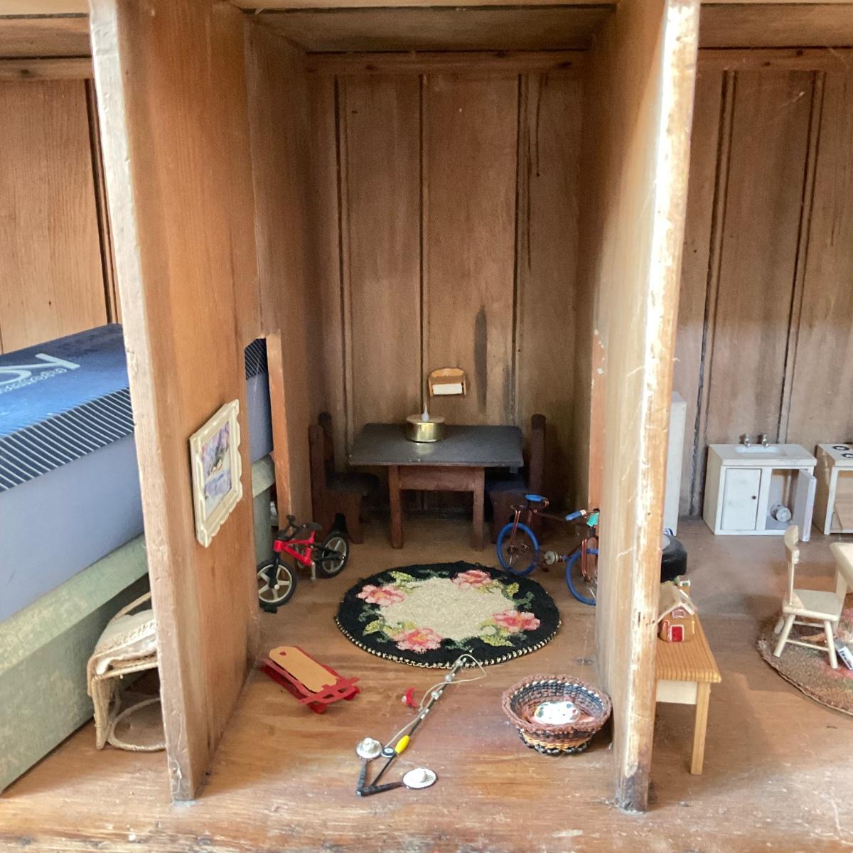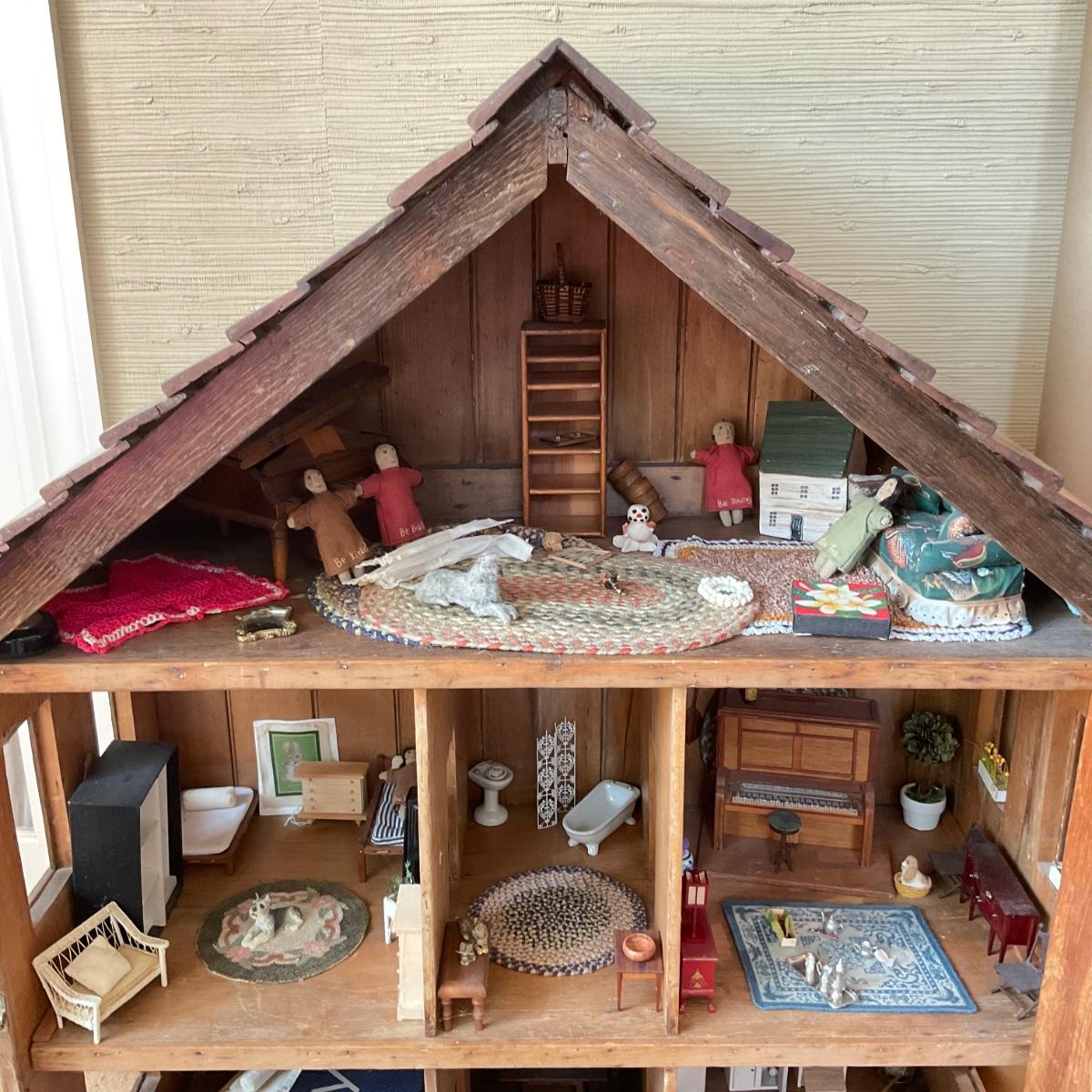 PR33 Antique Pine Doll House with Dolls & Accessories