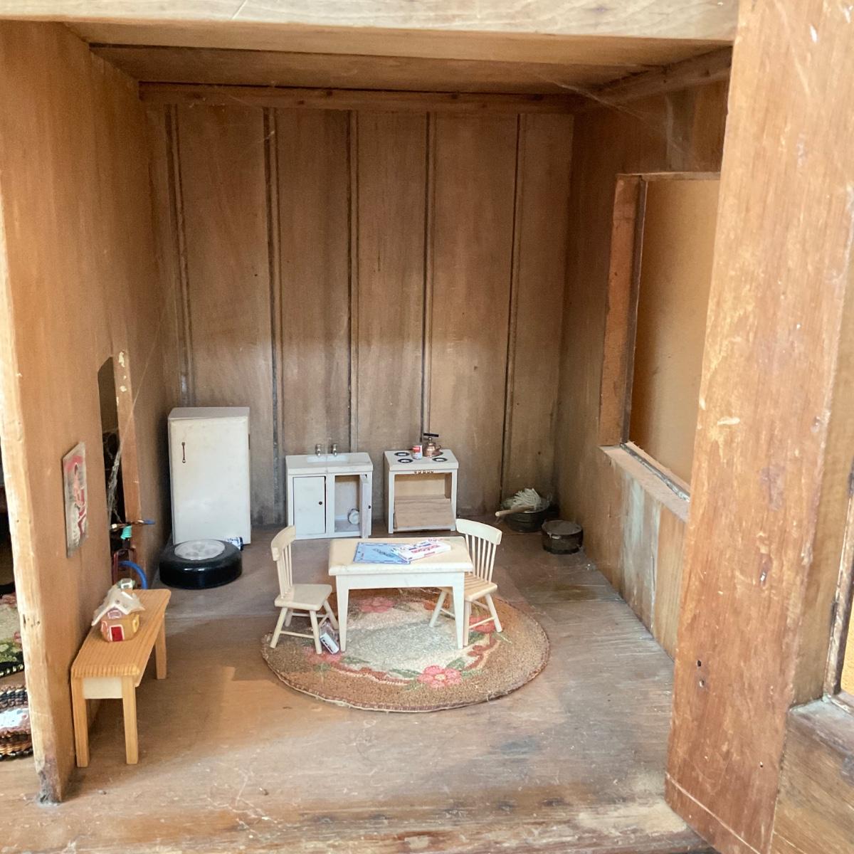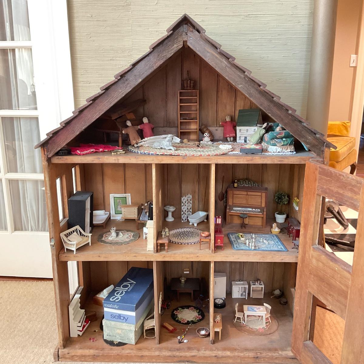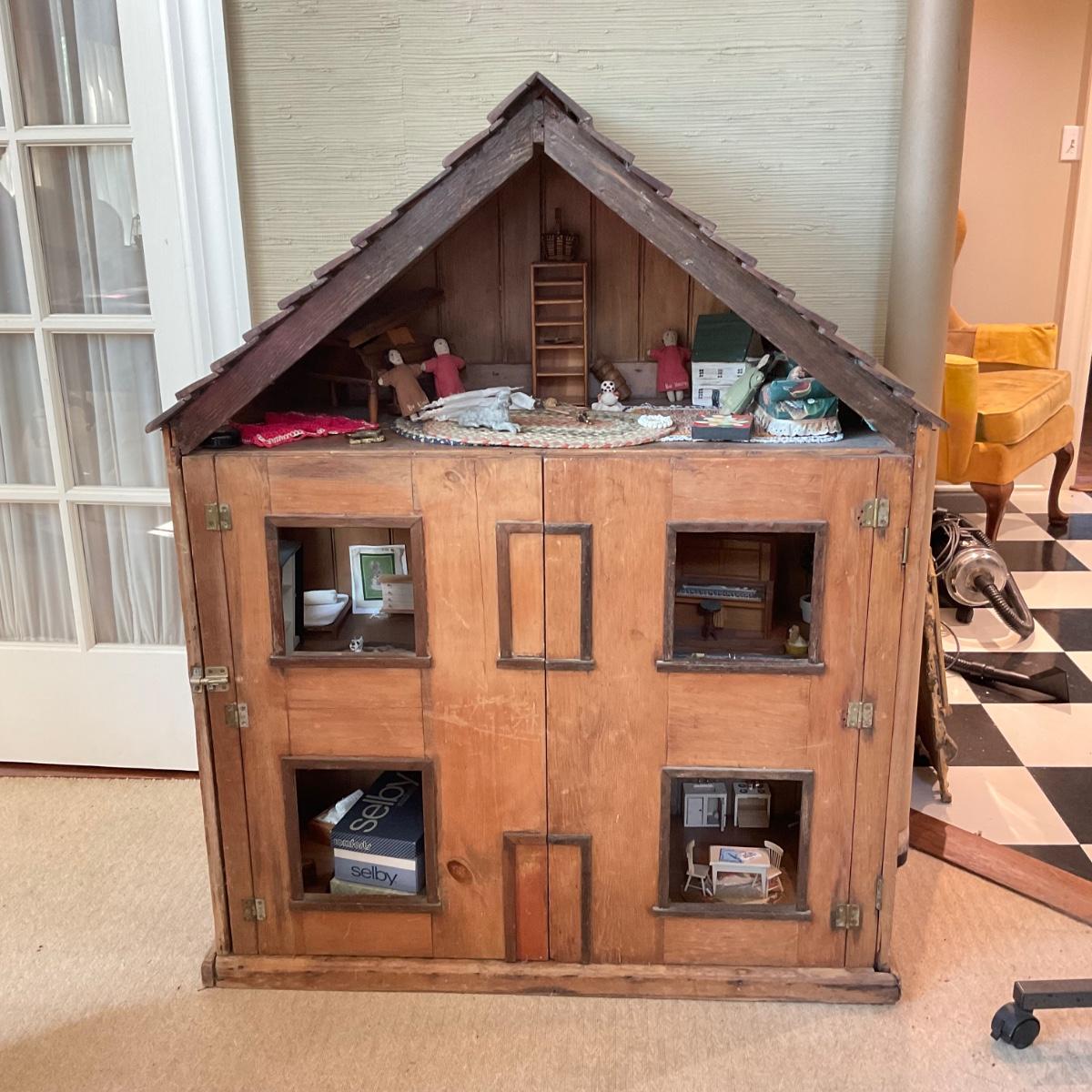 PR33 Antique Pine Doll House with Dolls & Accessories