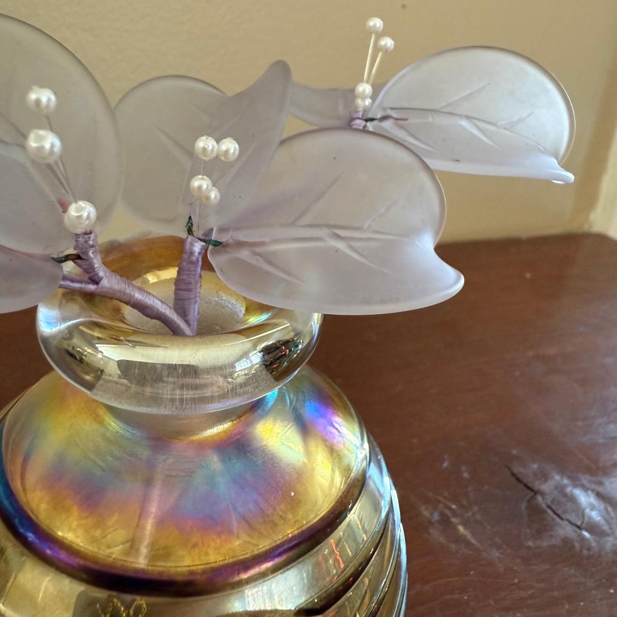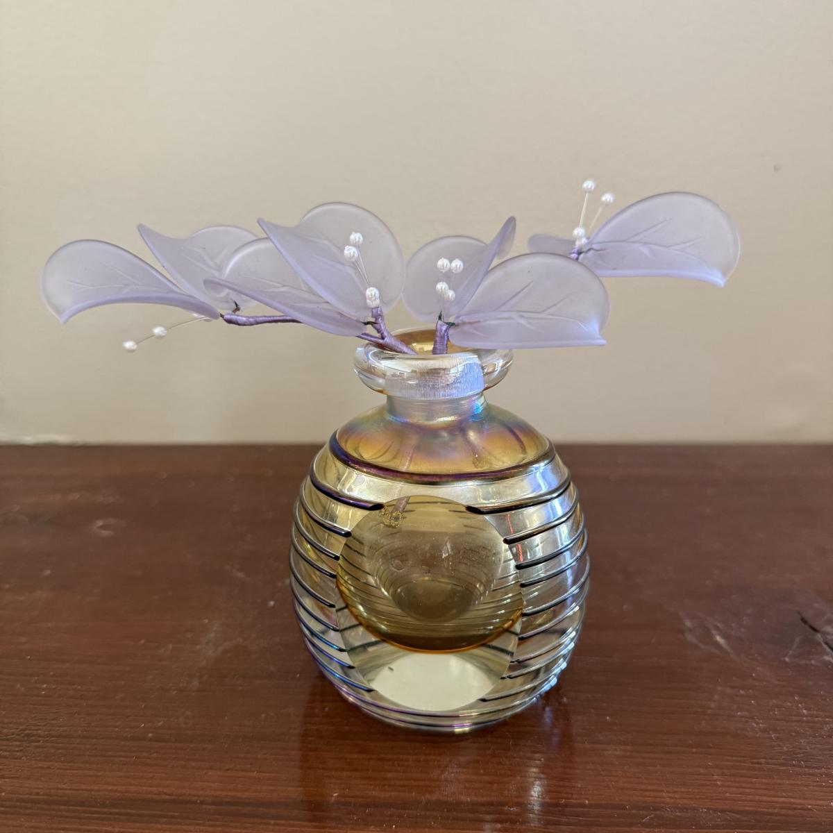 PR520 Art Glass Perfume Bottle with Glass Leafs