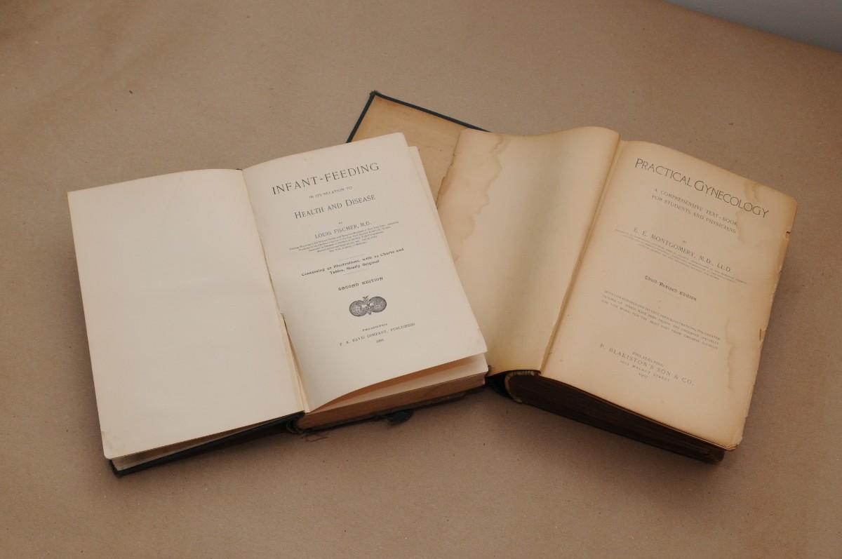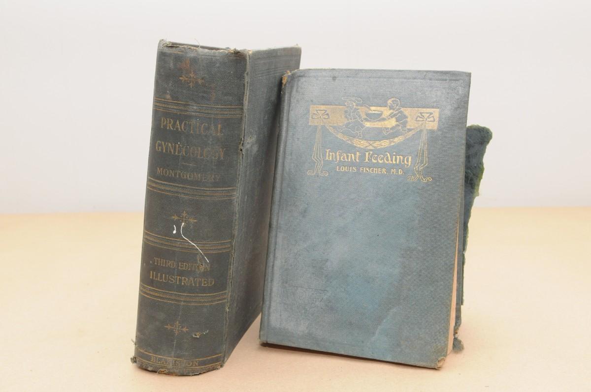 Practical Gynecology by EE Montgomery, 3rd Edition, published in 1907 by P. Blakiston Son & Co, Infant feeding by Louis Fischer, published in 1902 by F.A. Davis Company