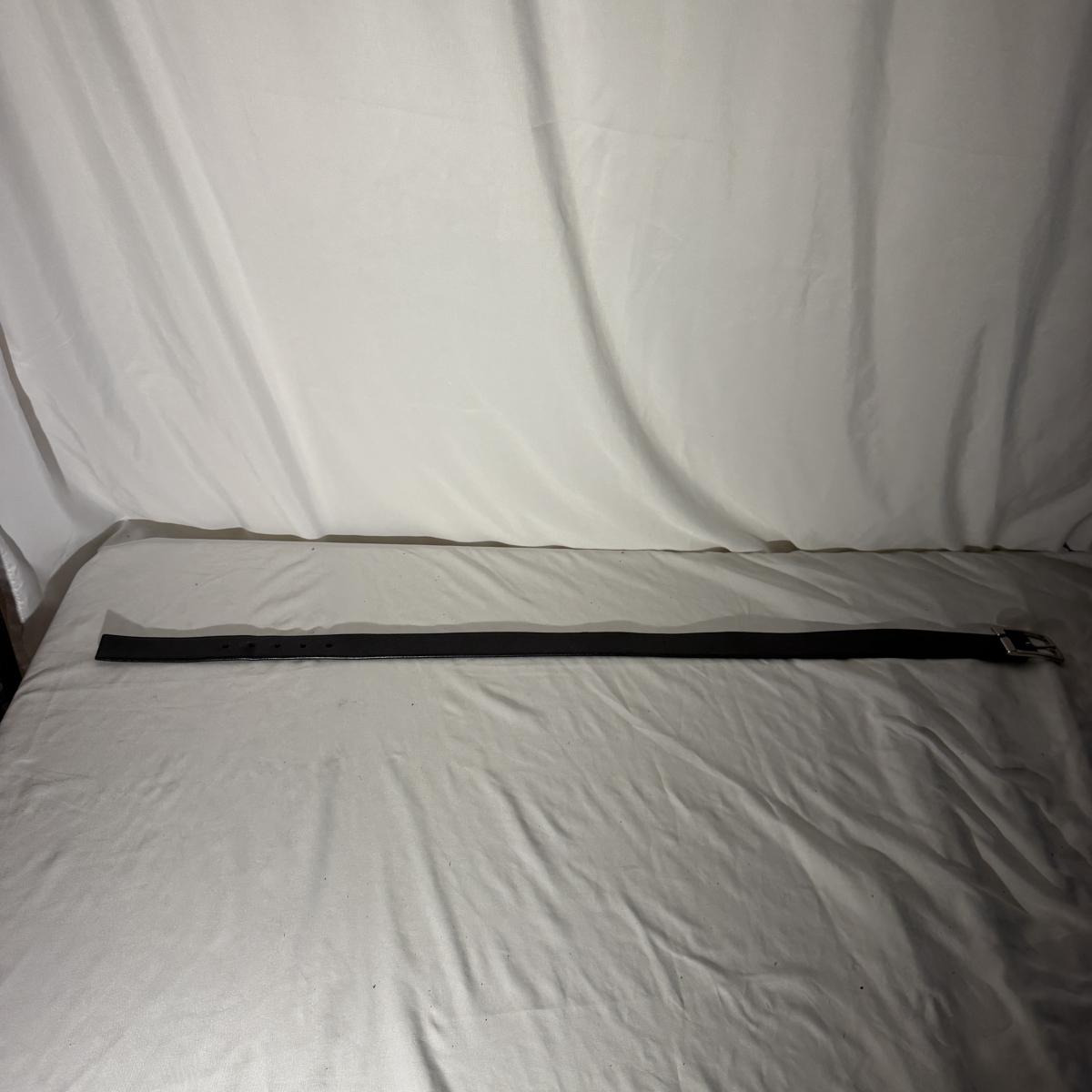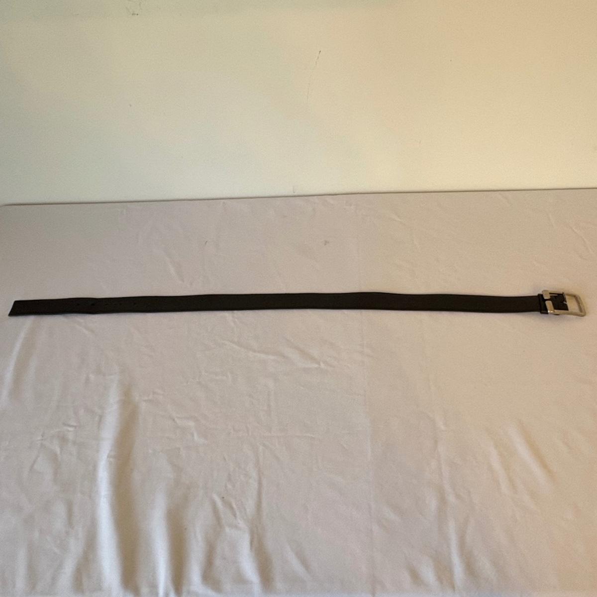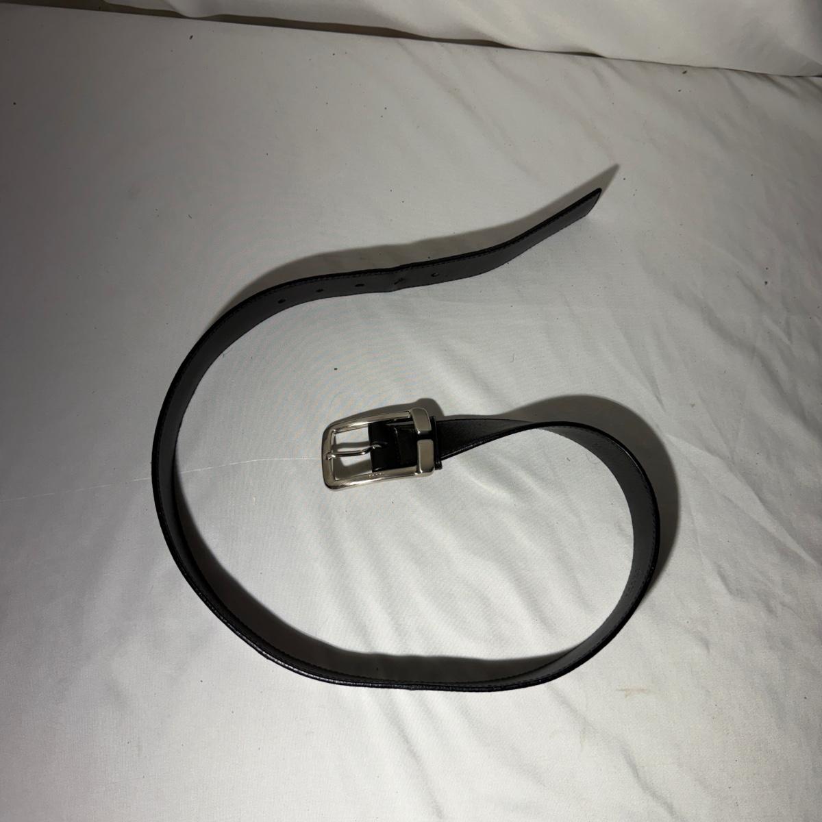 Lot includes a Prada black leather belt. Belt measures 38” long and comes with Prada bag.