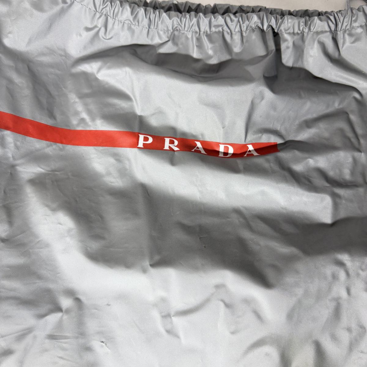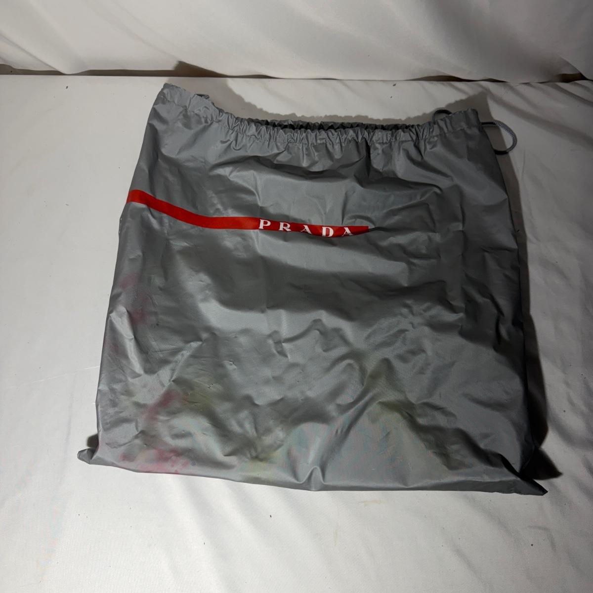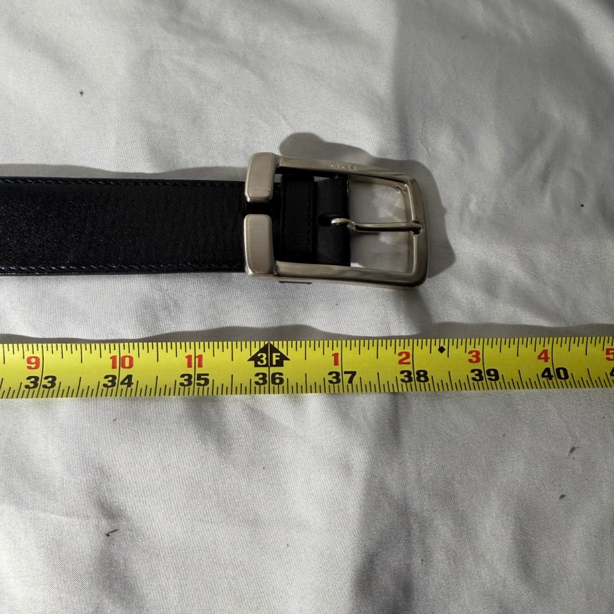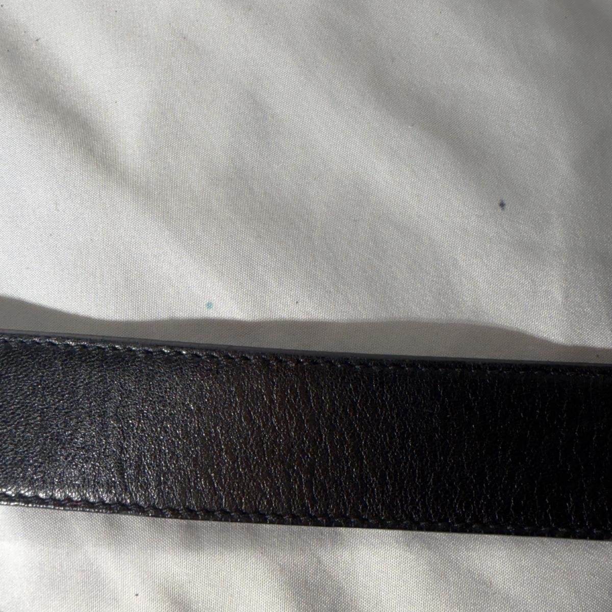 Lot includes a Prada black leather belt. Belt measures 38” long and comes with Prada bag.