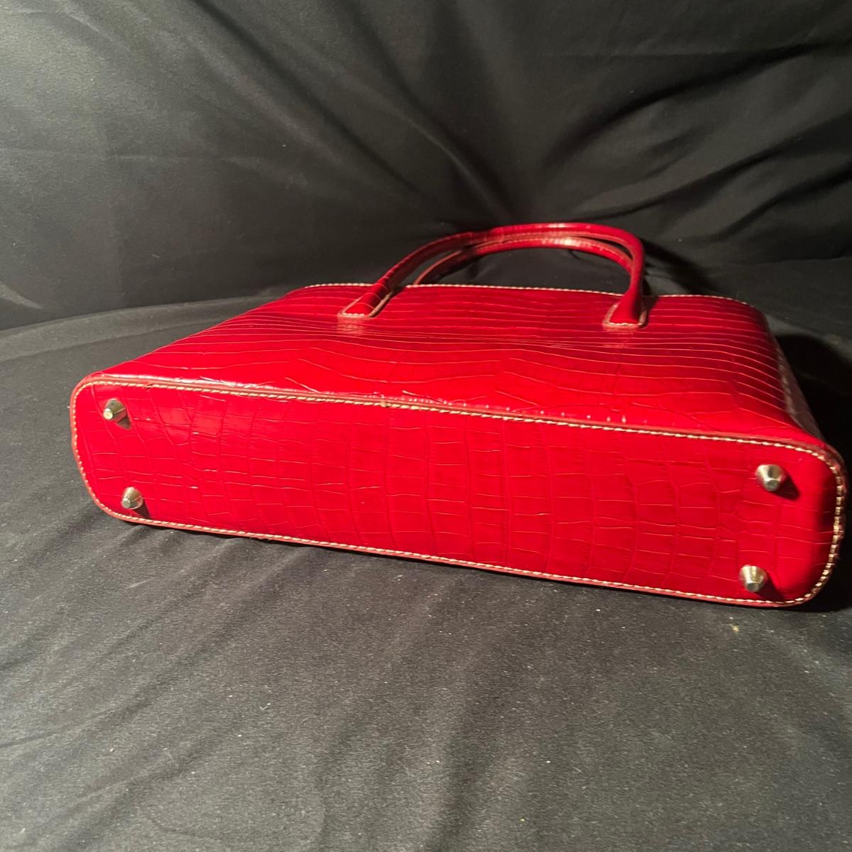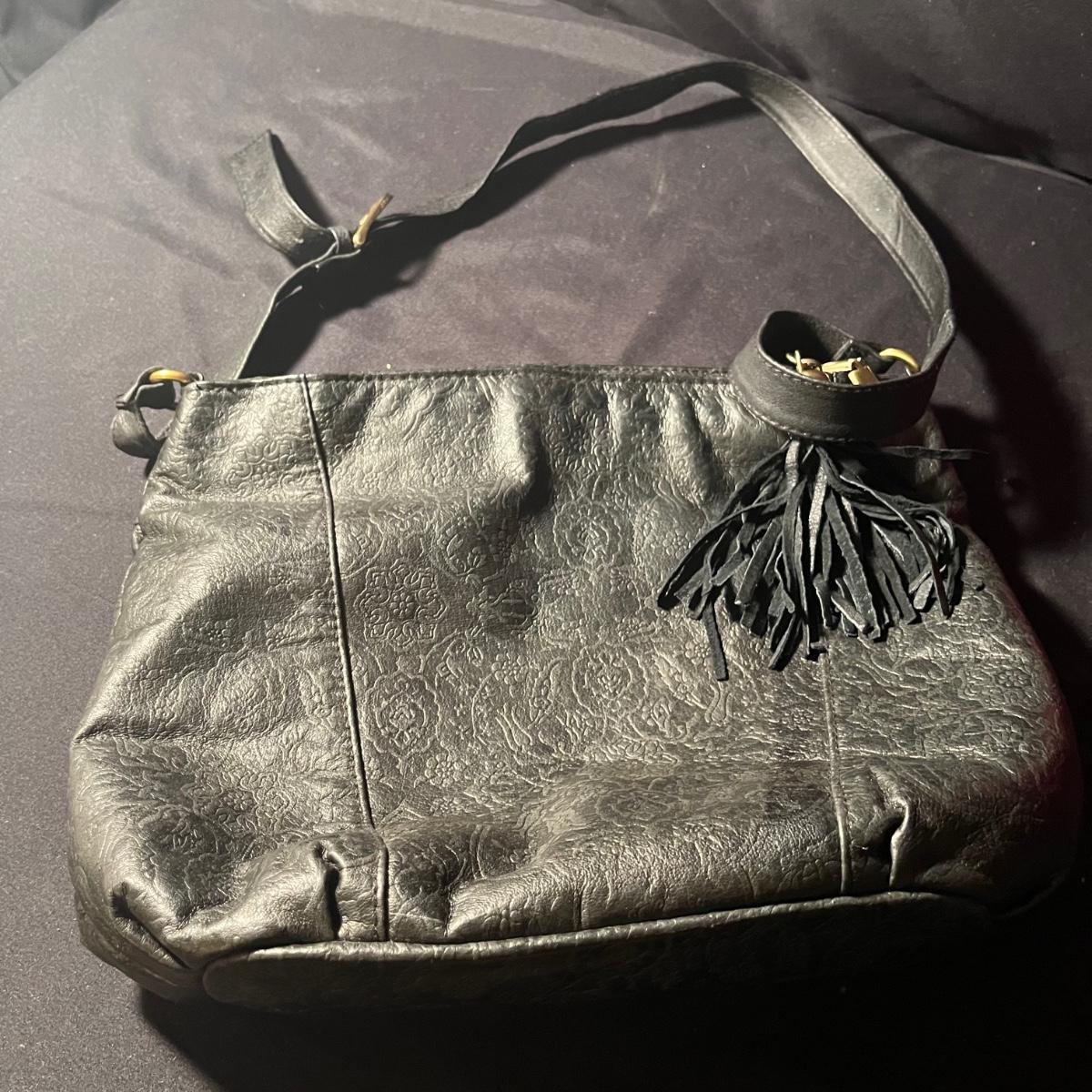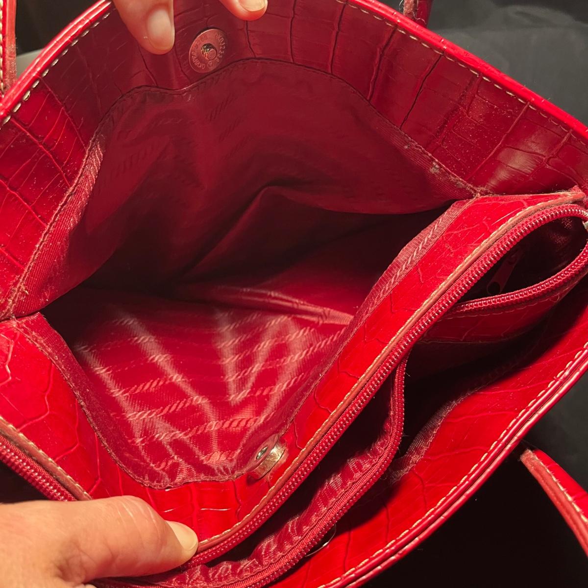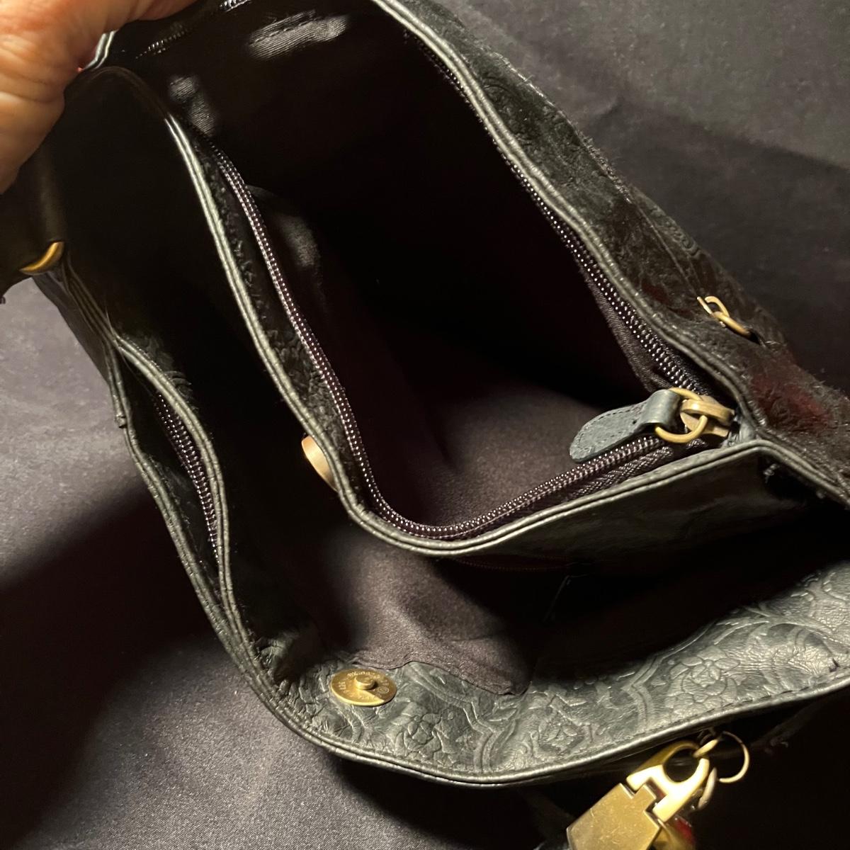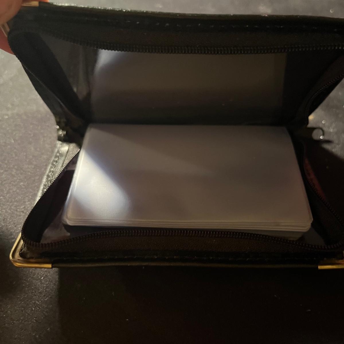 Lot includes Prada purse, two black unmarked purses with the material unknown, polka dot wallet, cow pattern wallet, black cowhide wallet and a small plastic wallet. We can not guarantee that the Prada purse is authentic. Prada purse measures 3” x 14” x 19” including handles.
