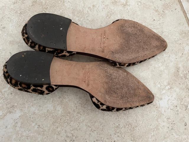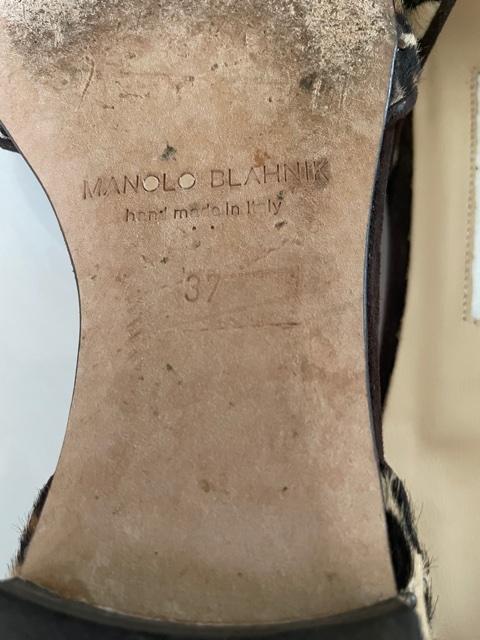 Pair of lightly worn leopard print Manolo Blahnik Slides. Size 37 EU (US size 7)