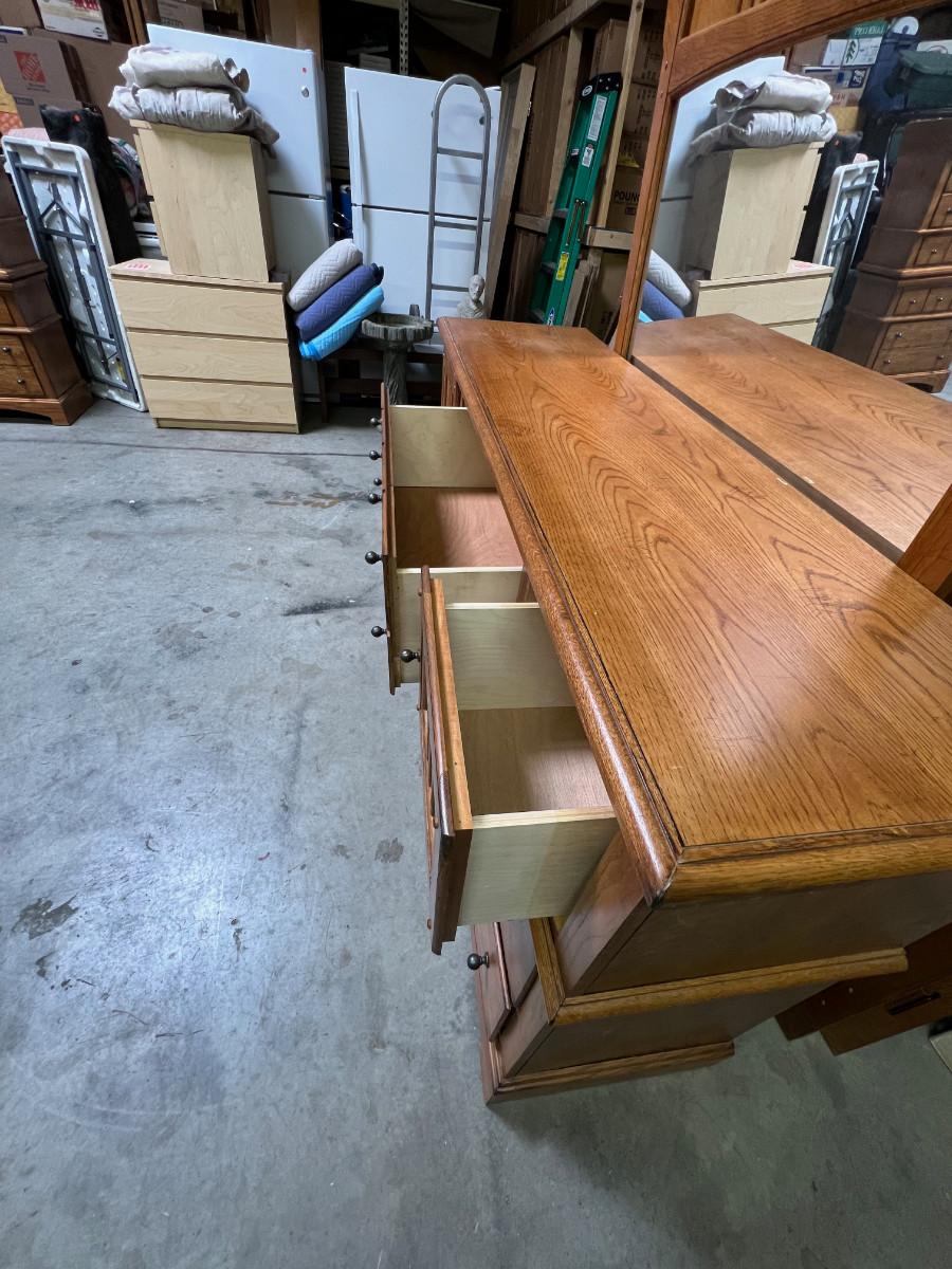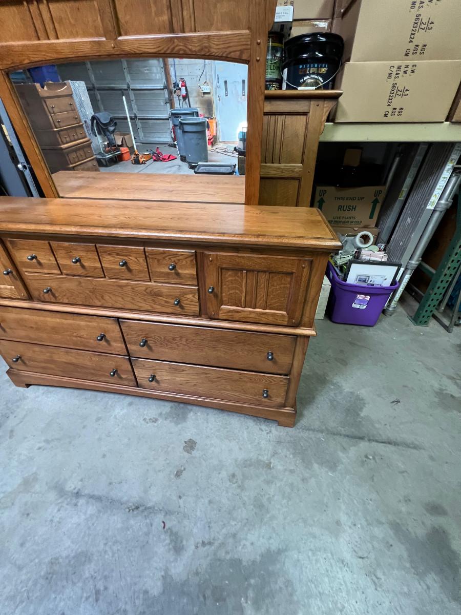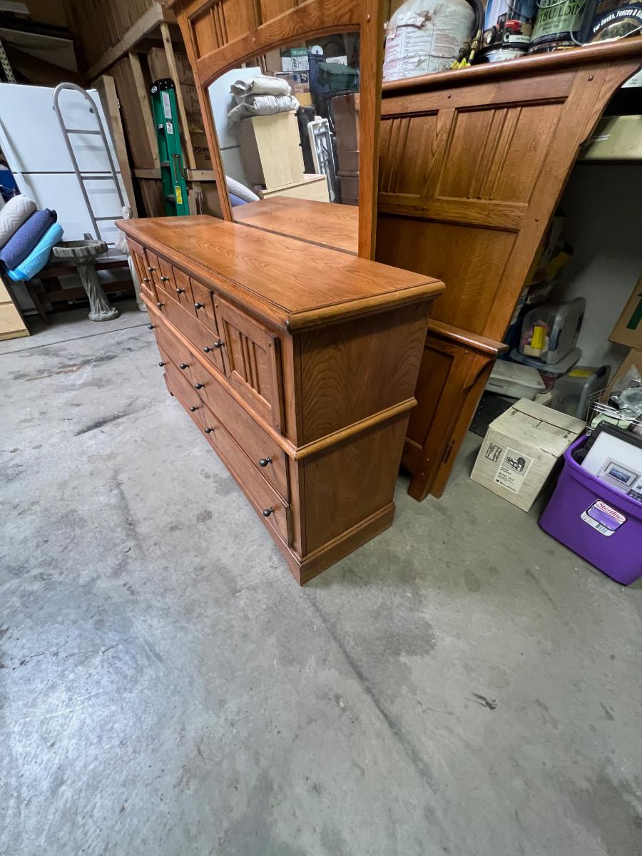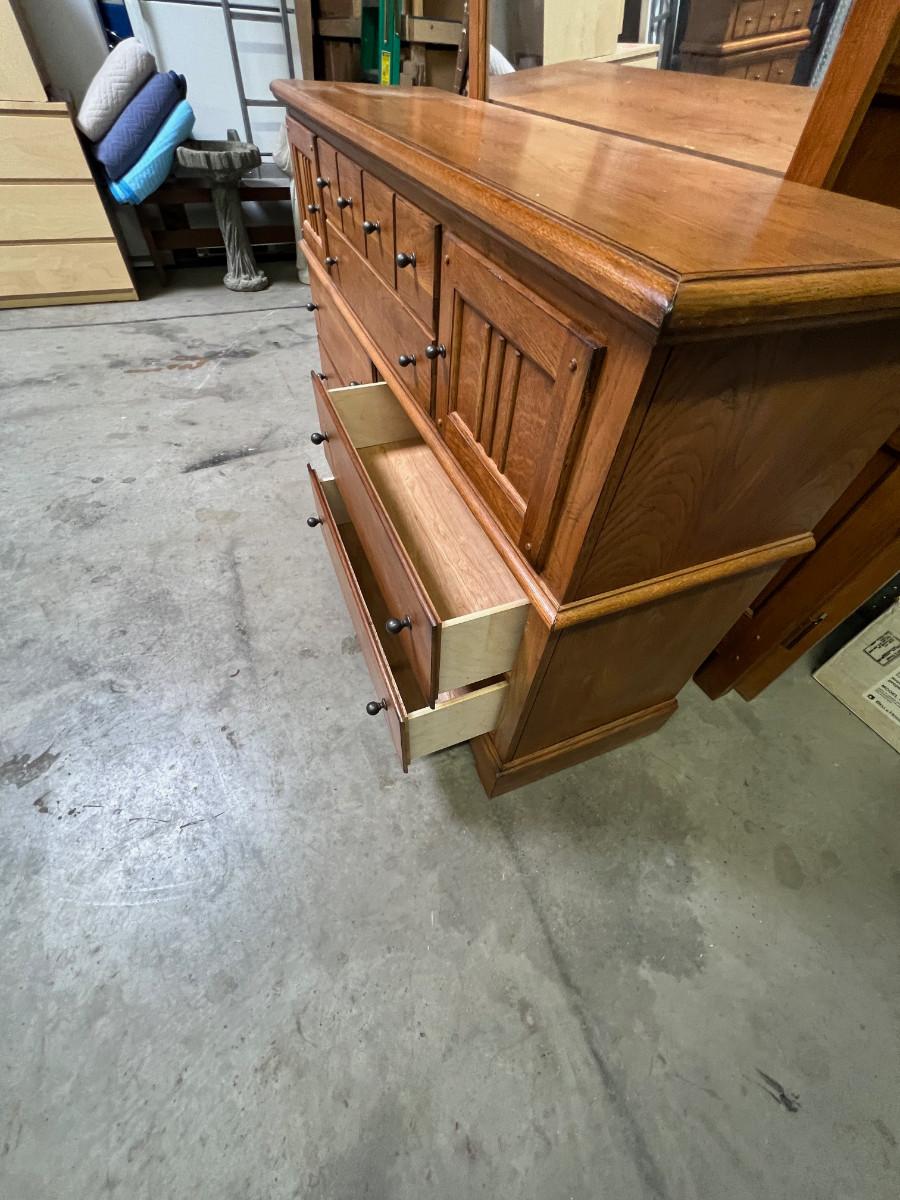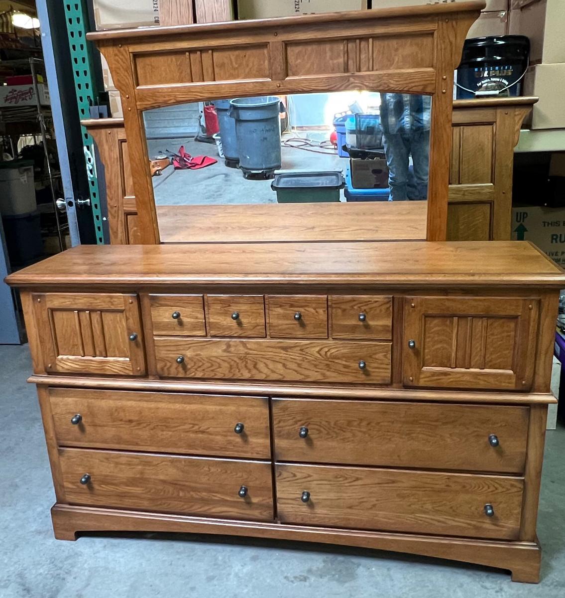 Prairie Style Oak Bedroom 7 Drawer Dresser with Mirror