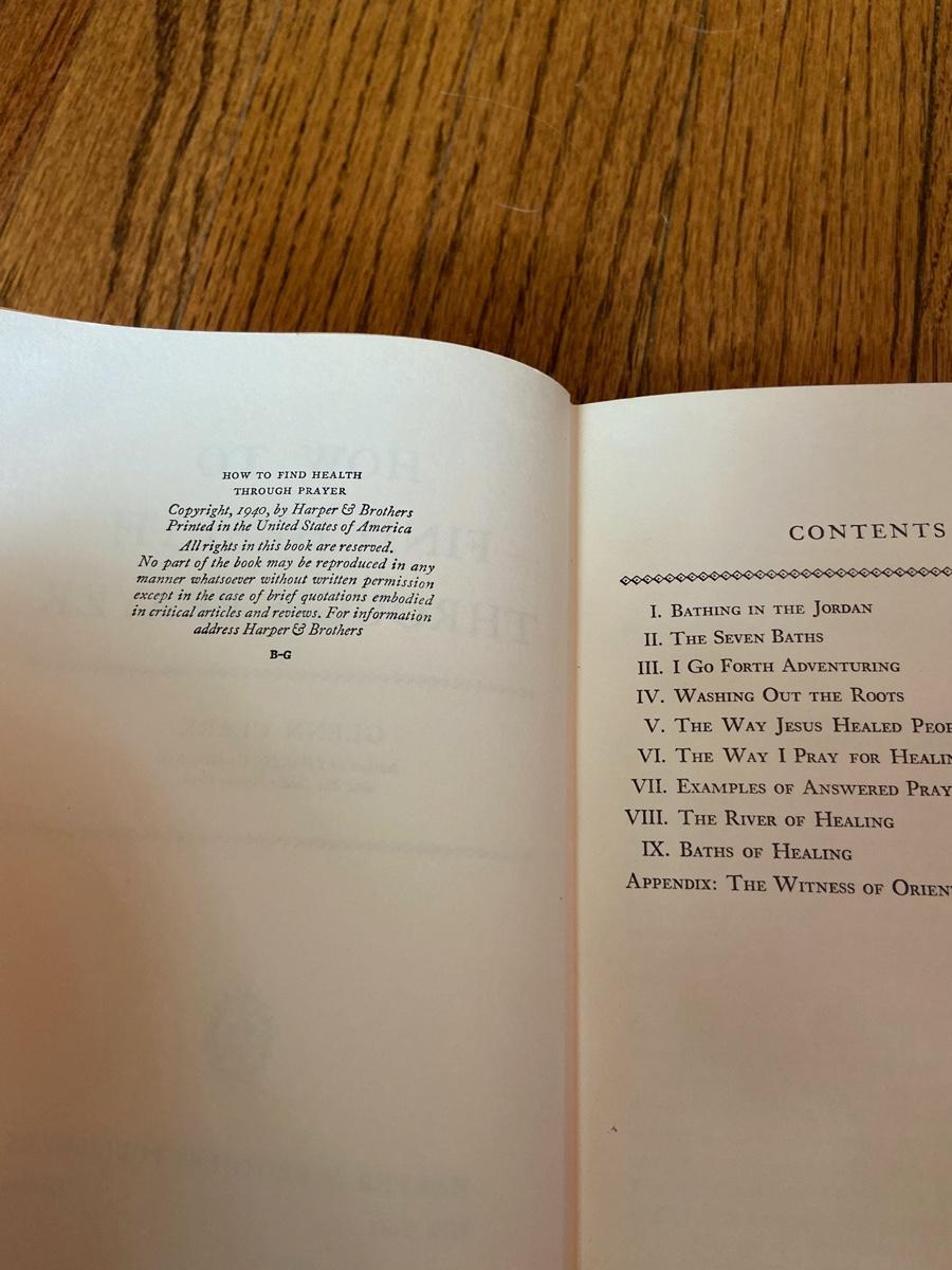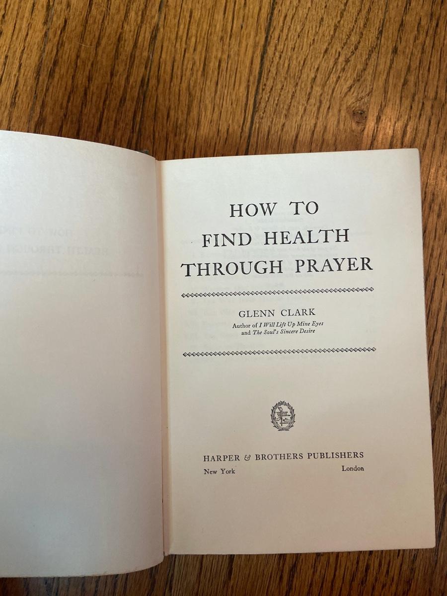 How to Find Health Through Prayer by Glenn clark (1940) green hardcover, published by Harper and Brothers Publishers. Printed in the United States.