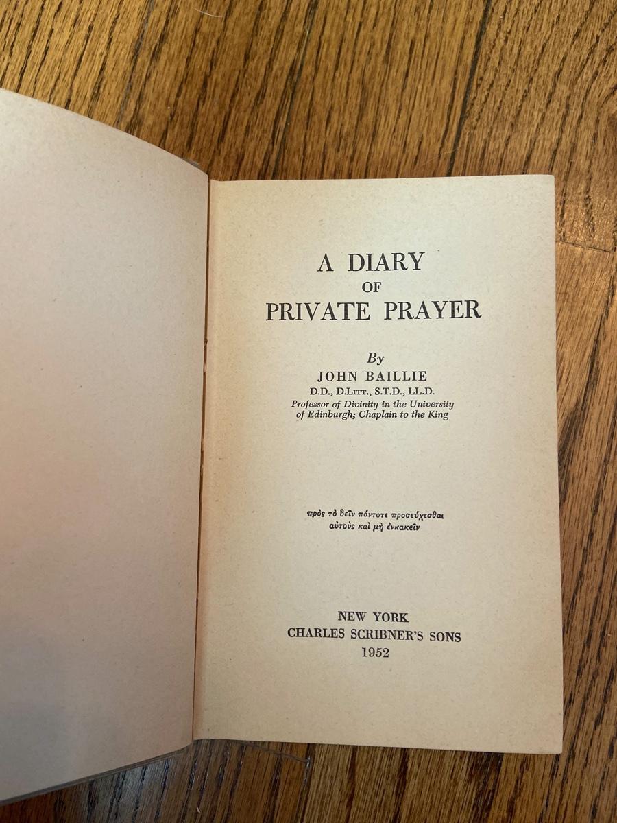 A Diary of Private Prayer by John Baillie (1952) grey hardcover, Published by Charles Scribner's Sons. Printed in the United States.