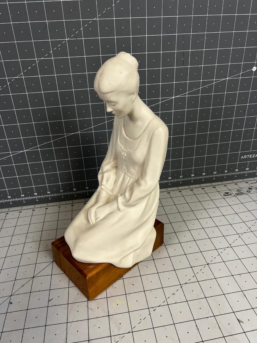 10" Tall Good Condition on Walnut Base. Pretty and Humble!
