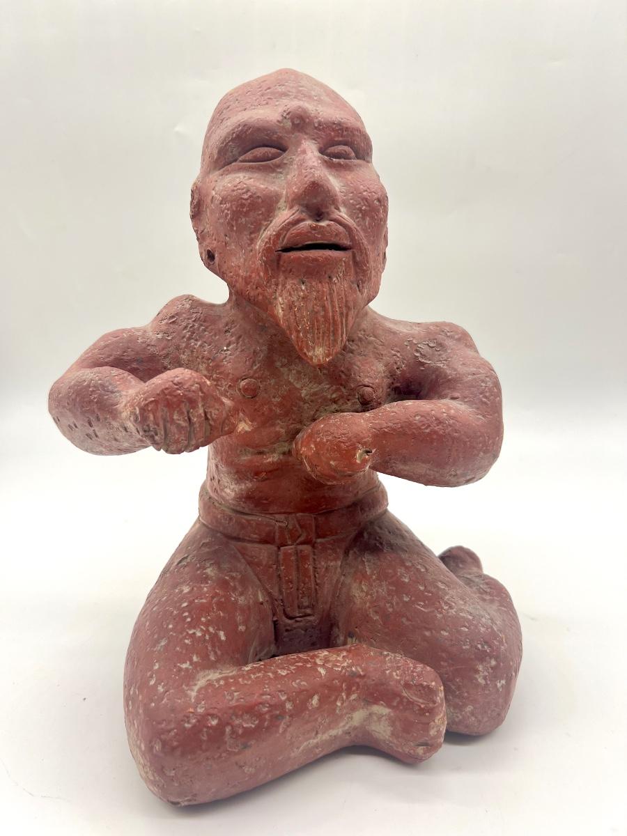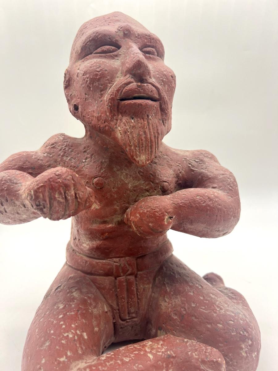 Pre Colombian Red Clay Figurine, very detailed! Measures 12 inches tall and approximately 11 inches wide.