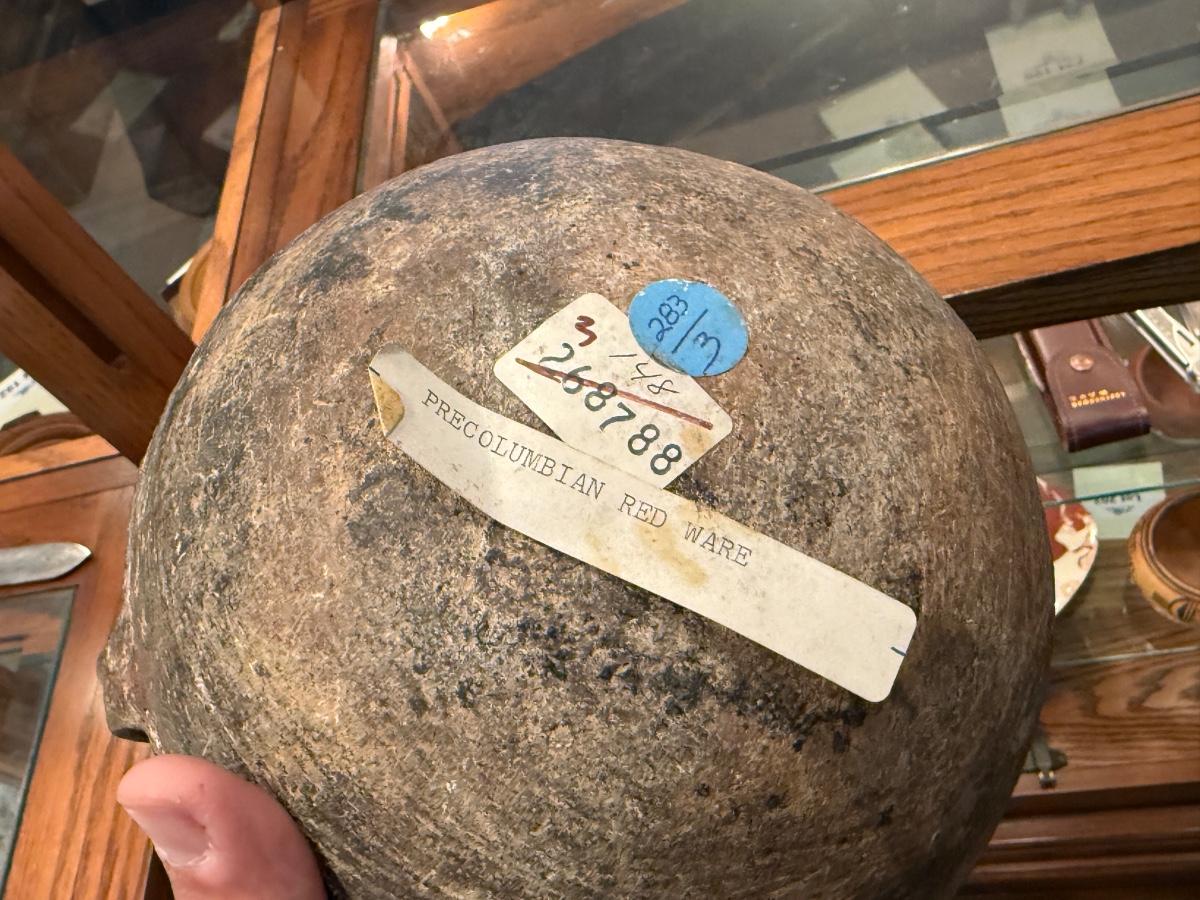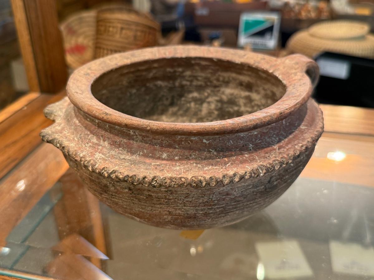 Pre columbian red ware bowl & standing small figure
