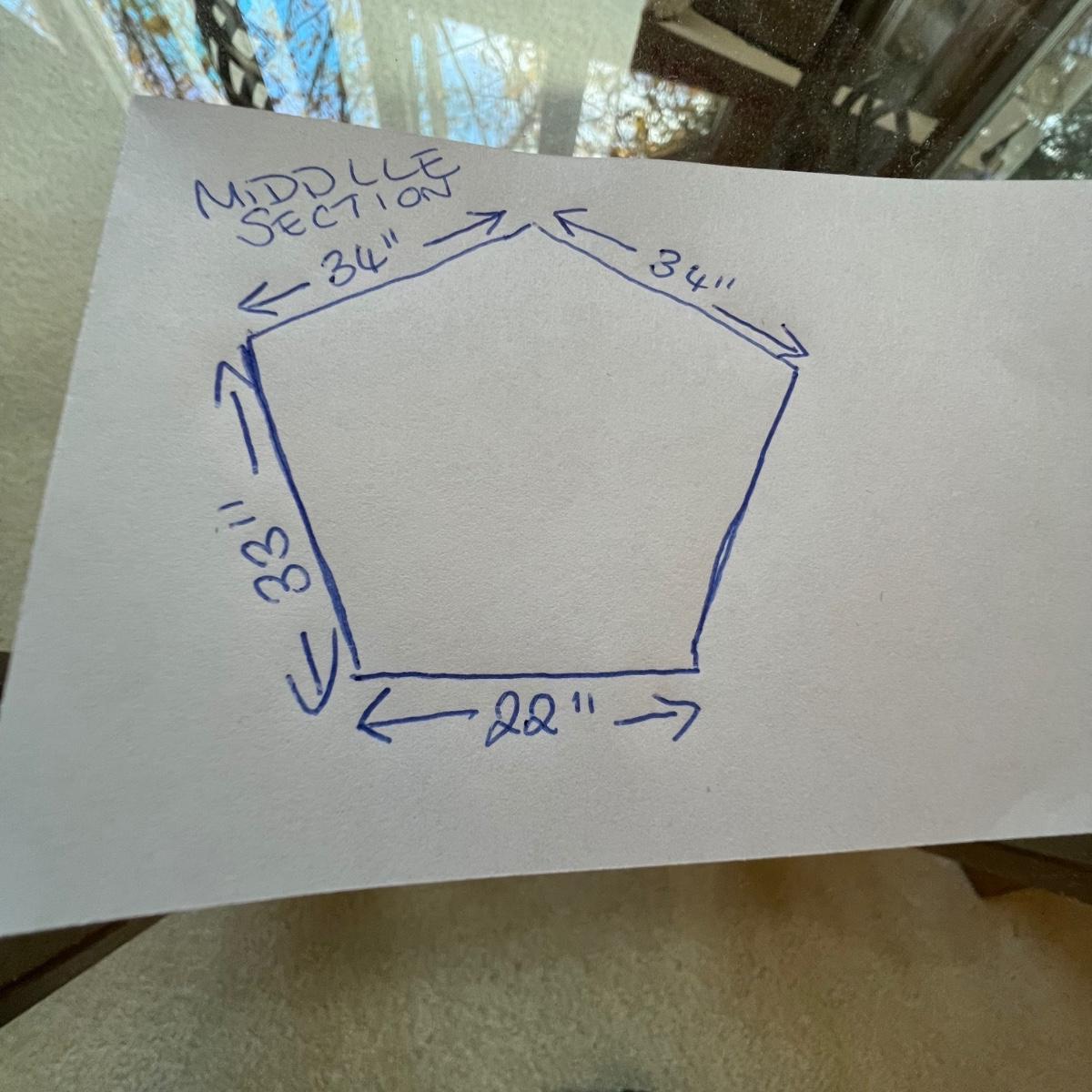The left and right sections measure 60” x 33” x 29”H with 18” seat height, see photo for center piece measurements.