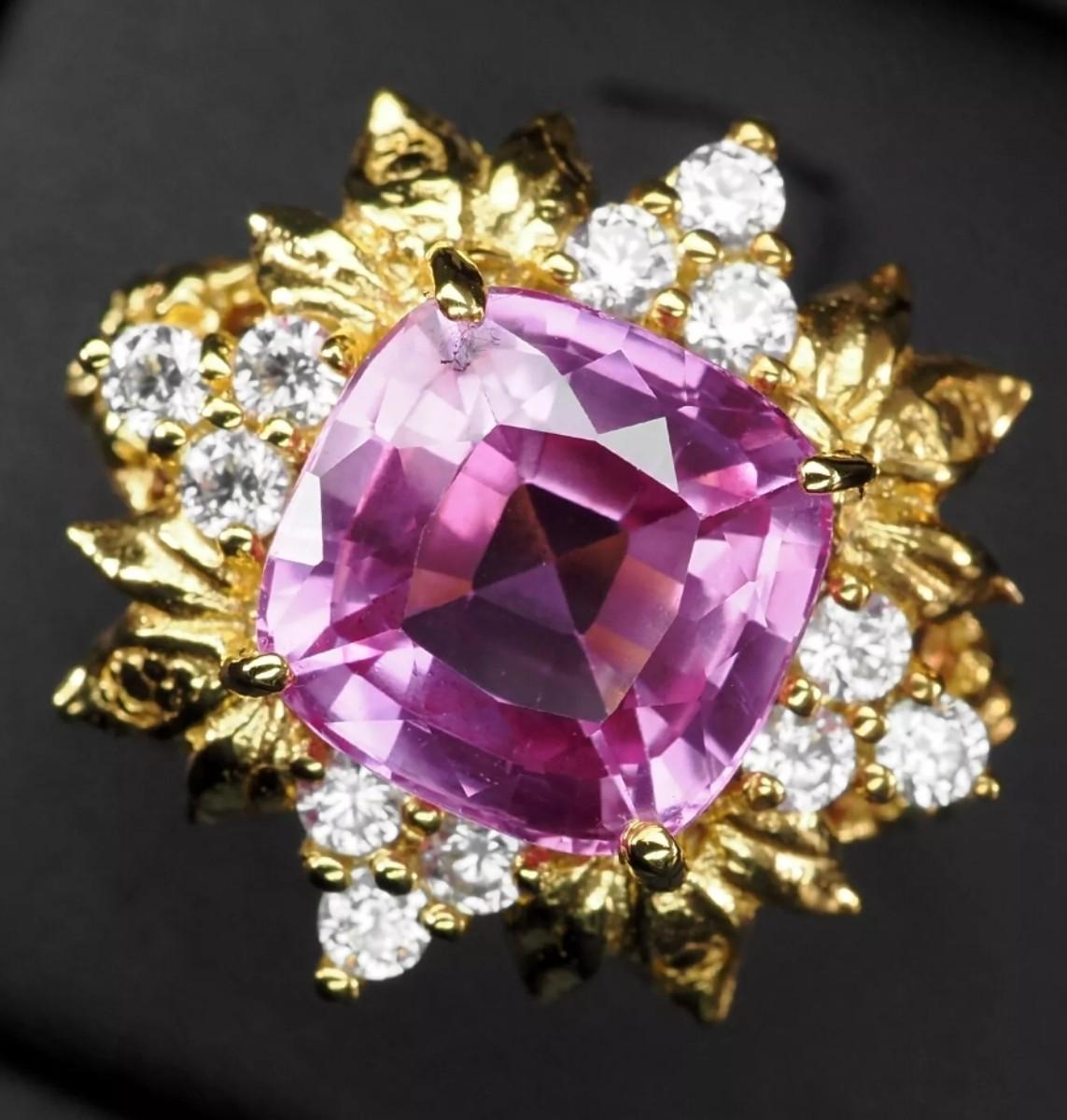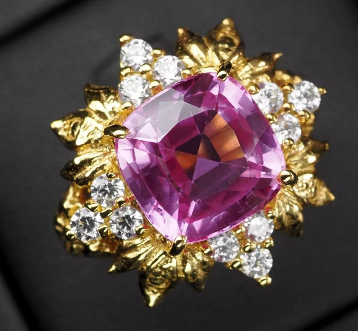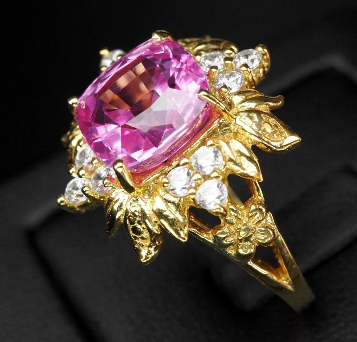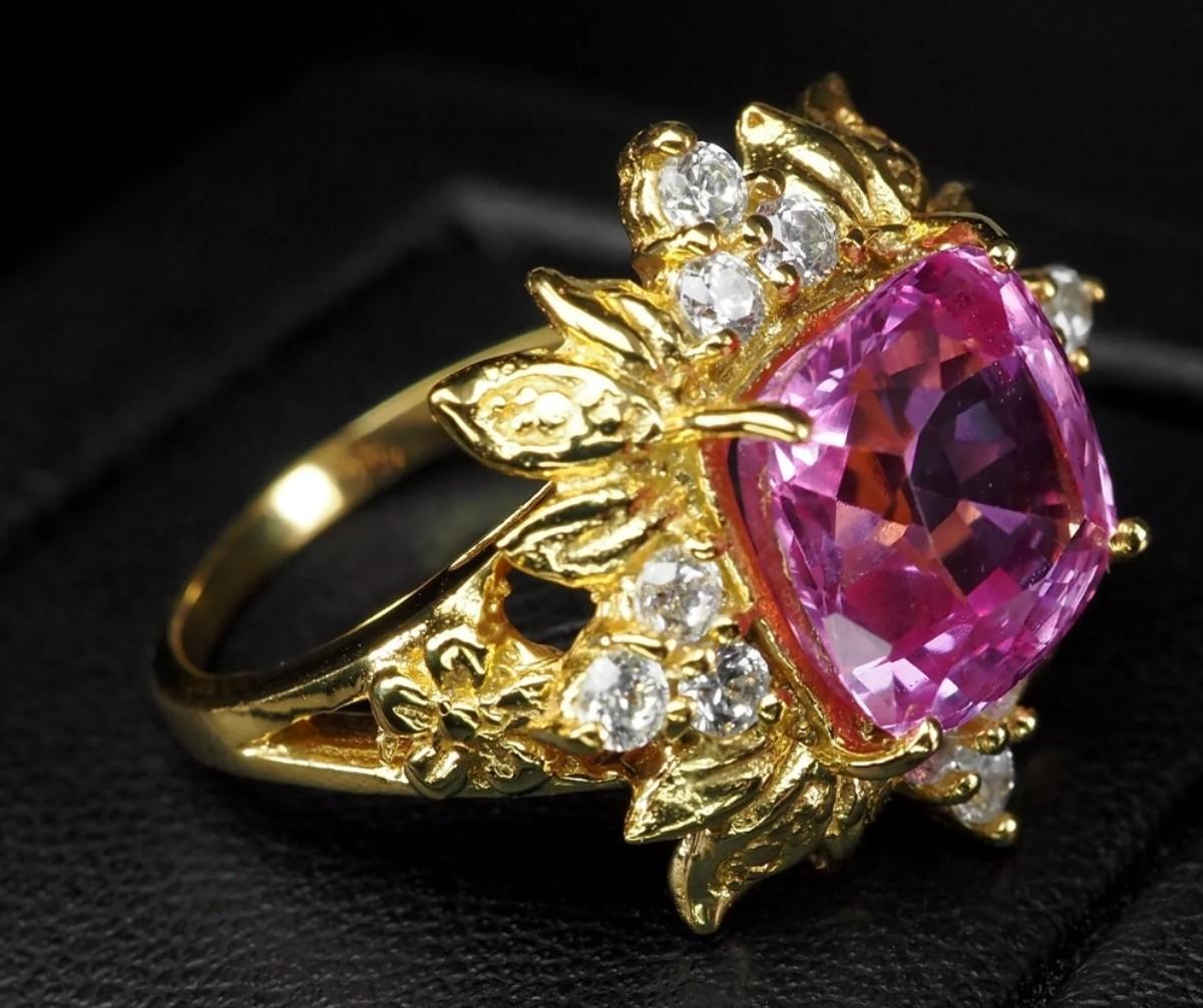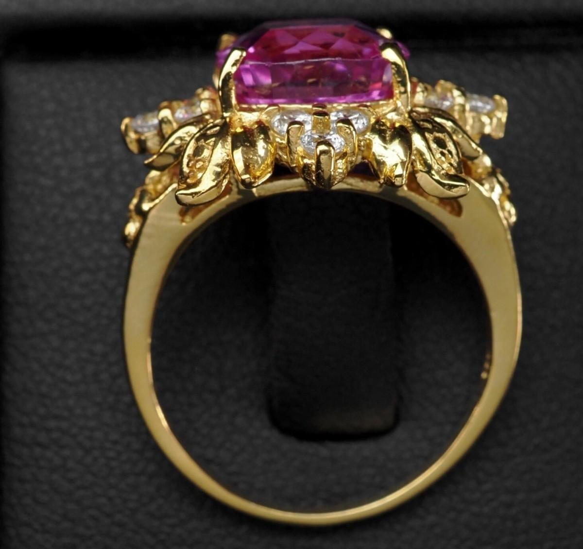 Precious Fuchsia Pink Tourmaline 5.70Ct 925 Sterling Silver 24K Gold Plated Ring