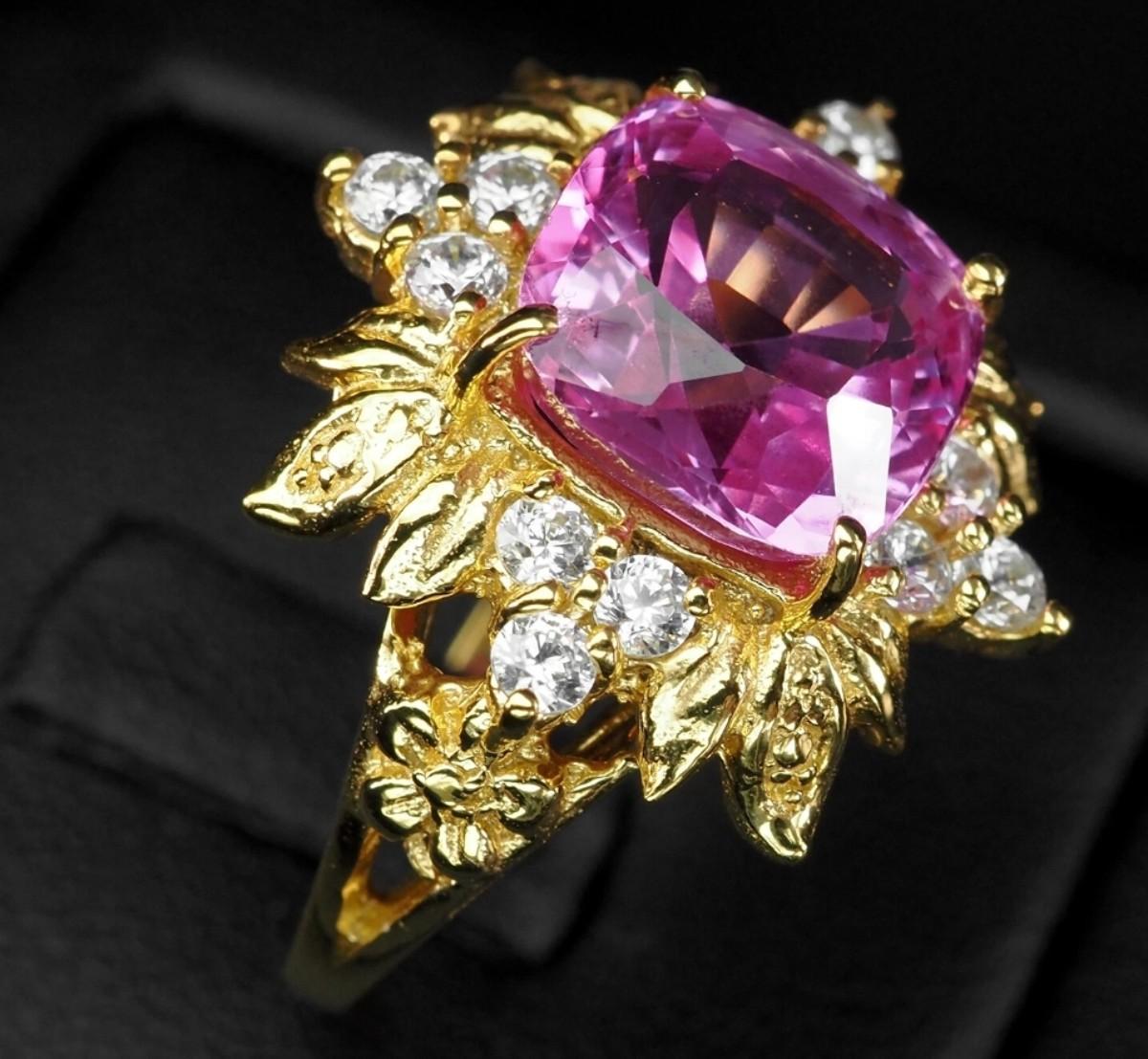 Precious Fuchsia Pink Tourmaline 5.70Ct 925 Sterling Silver 24K Gold Plated Ring