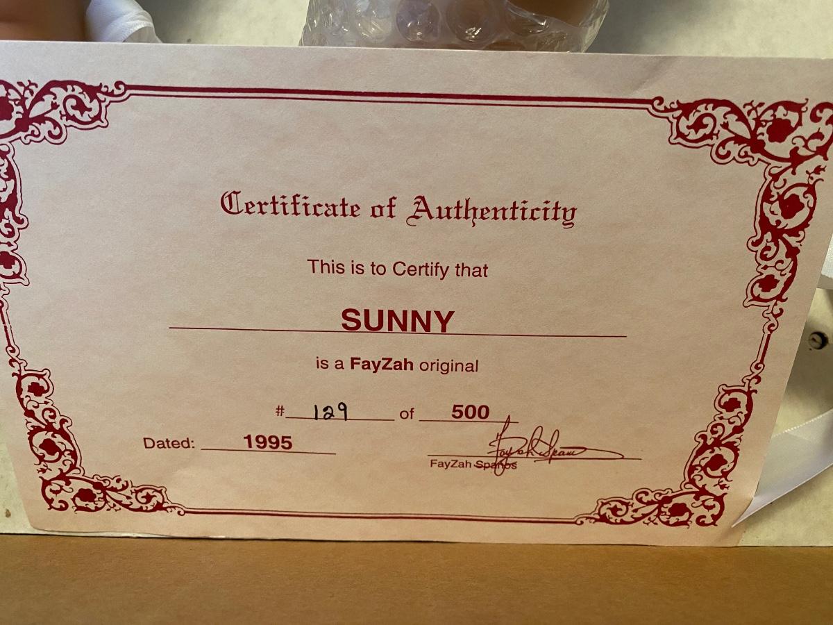 Precious Heriloom Doll Sunny Doll, Originals by Fayzah Spanos , 129/500 As Pictured