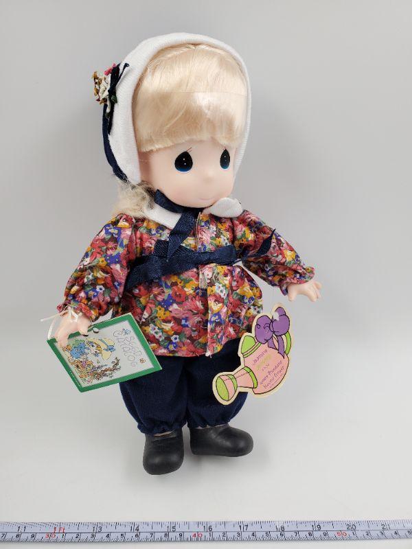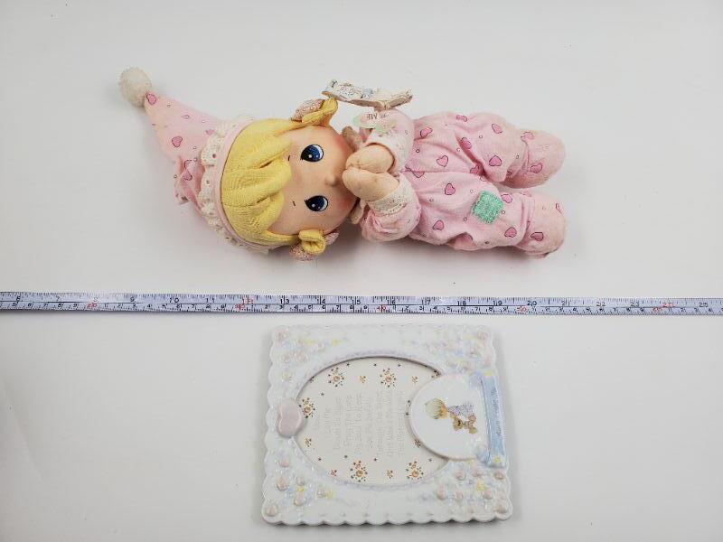 Soft Precious Moments doll, tag is attached but worn, music box no longer works but still an adorable doll.
