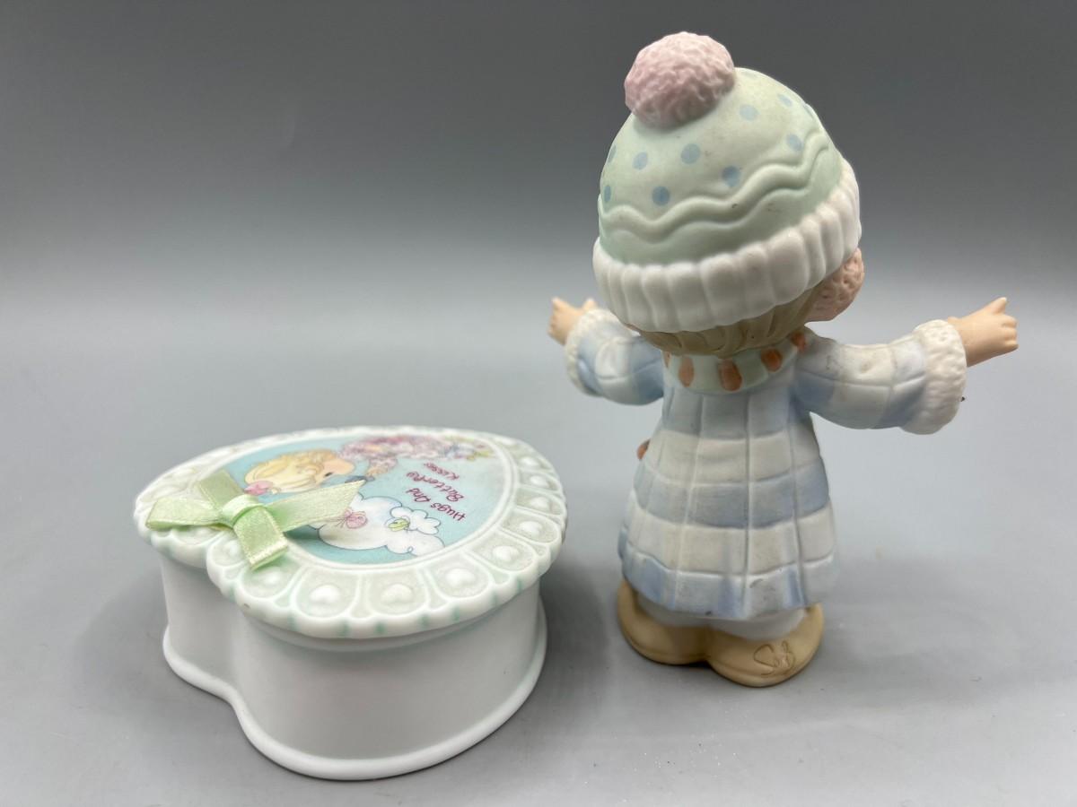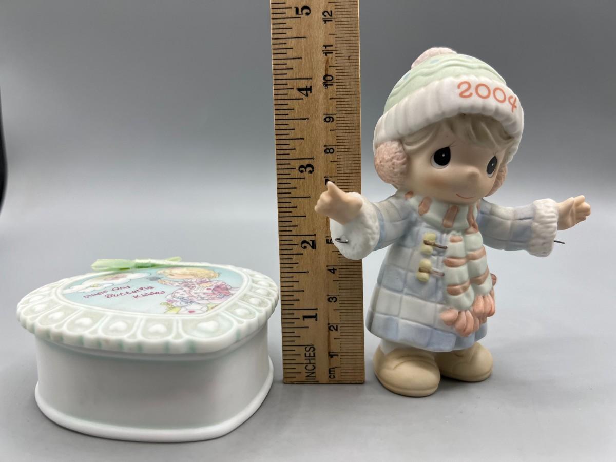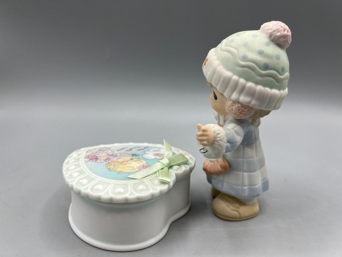 Precious Moments Ceramic Snow Outfit Figurine & Heart Shaped Trinket Dish