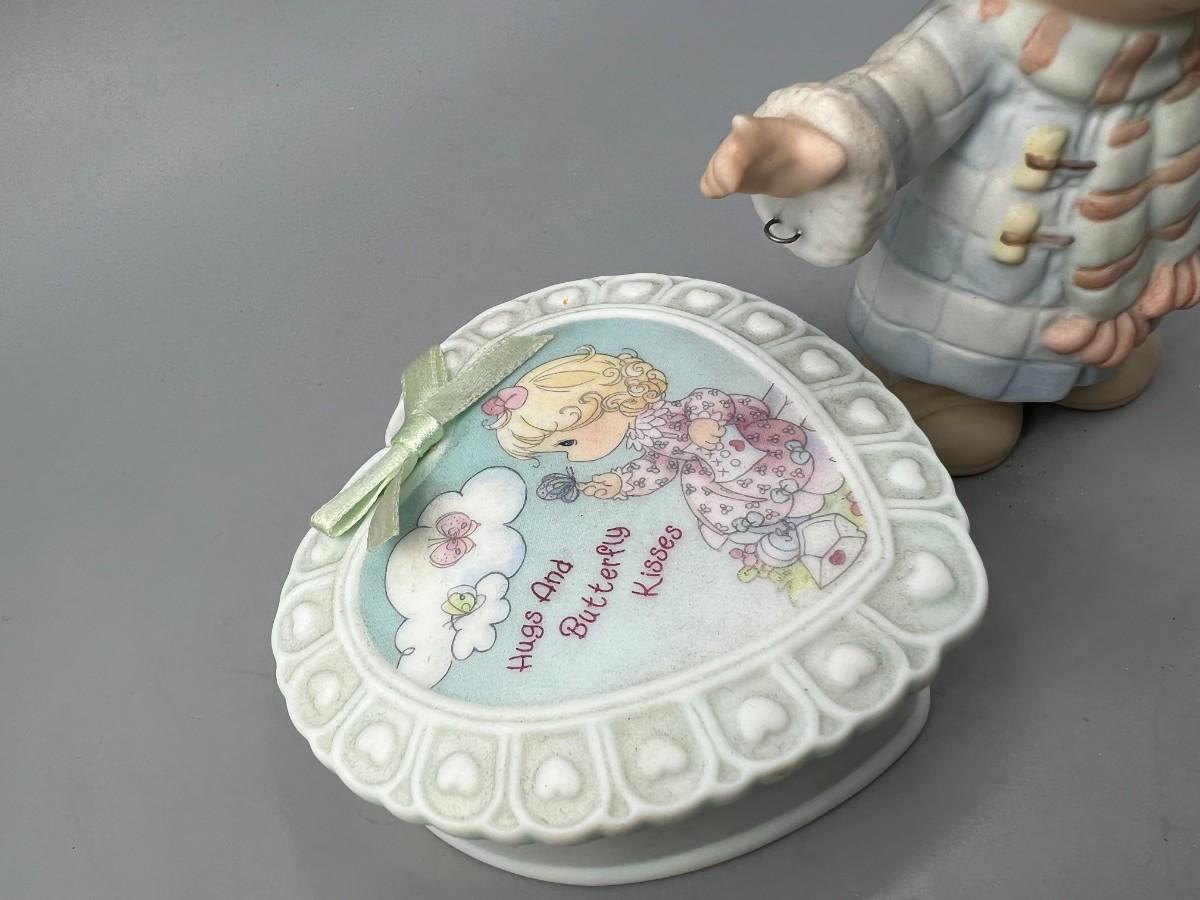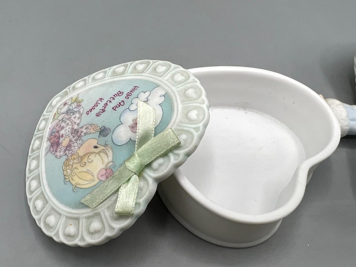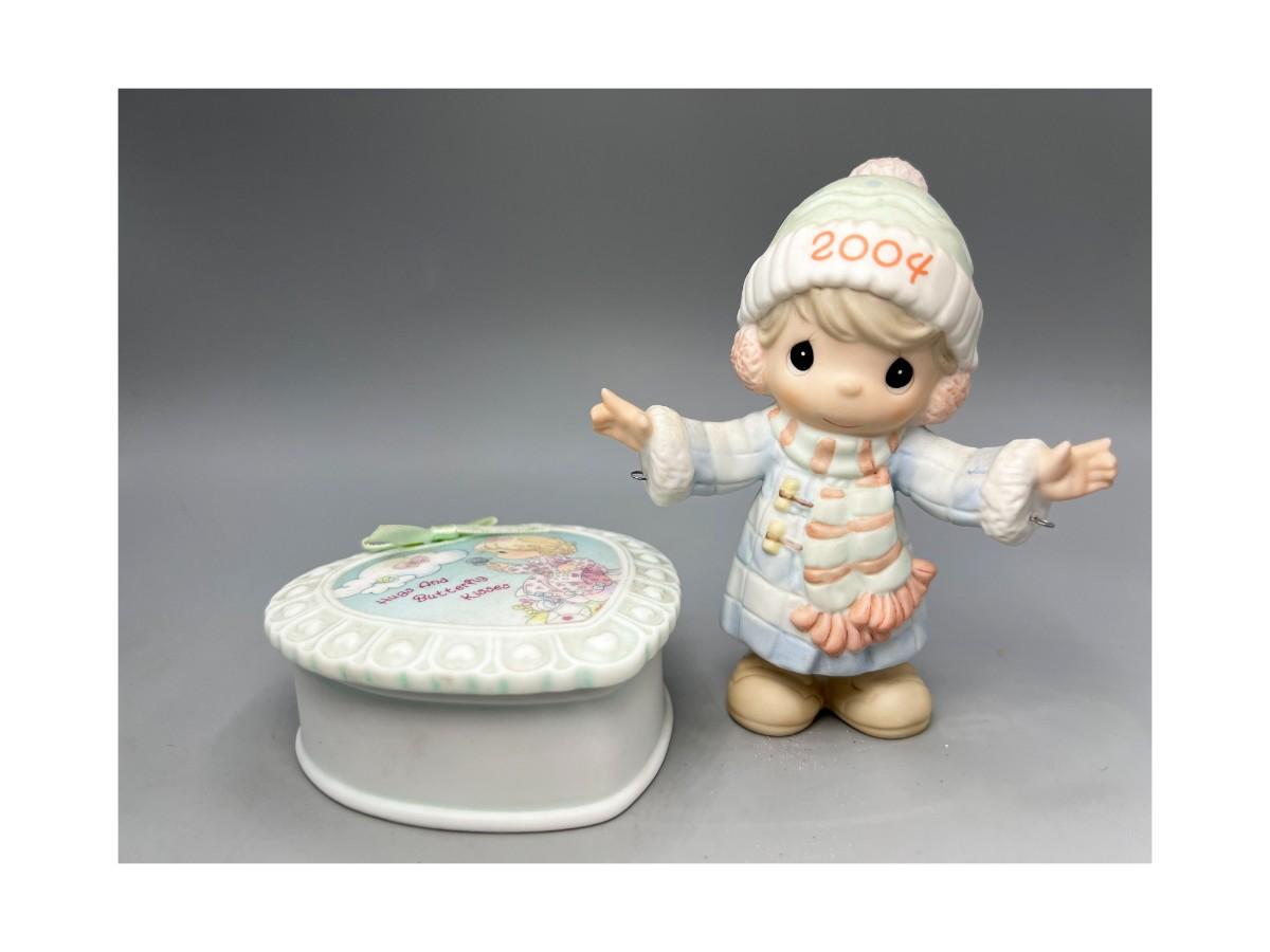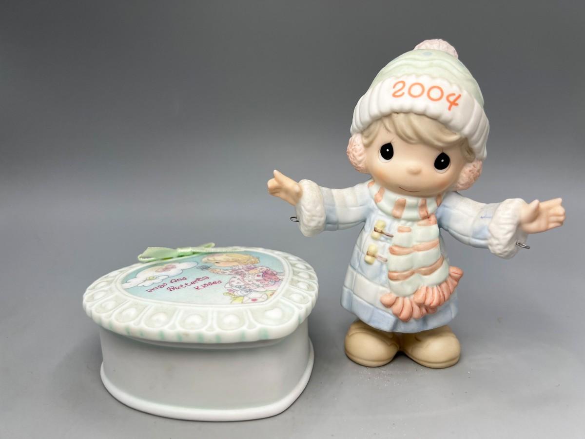 Precious Moments Ceramic Snow Outfit Figurine & Heart Shaped Trinket Dish