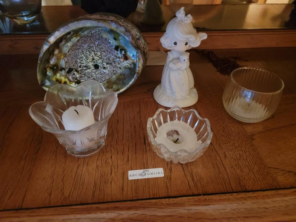 precious moments figurine mother of pearl bowl 3 candle dishes