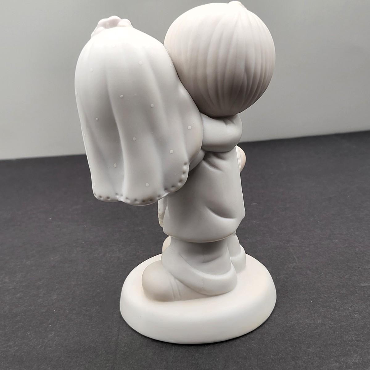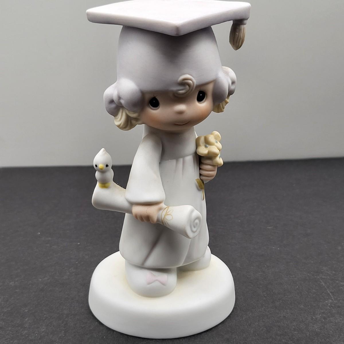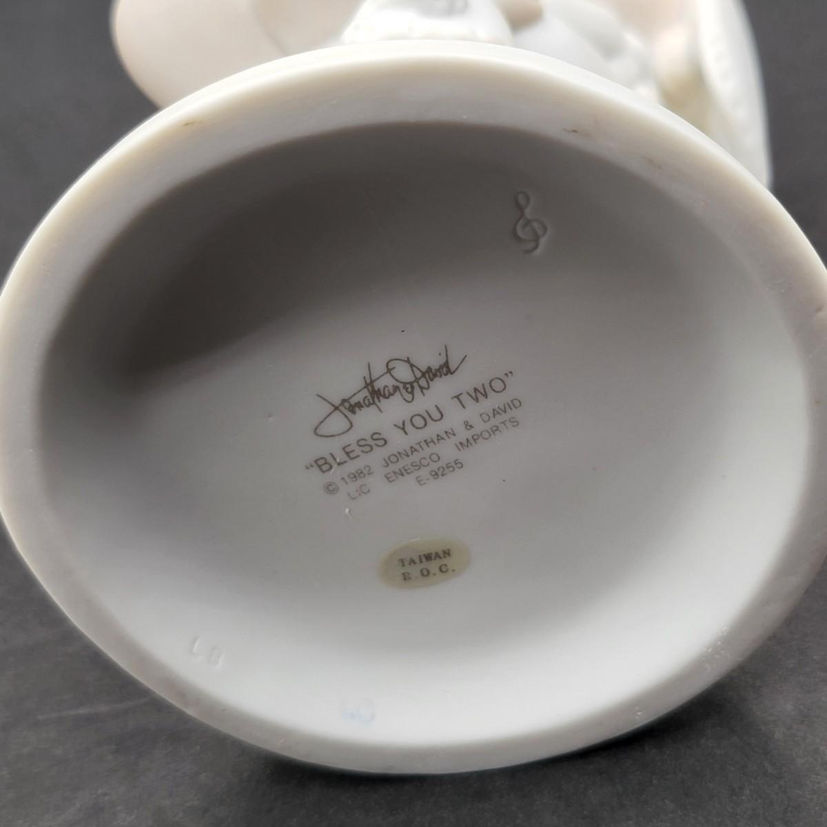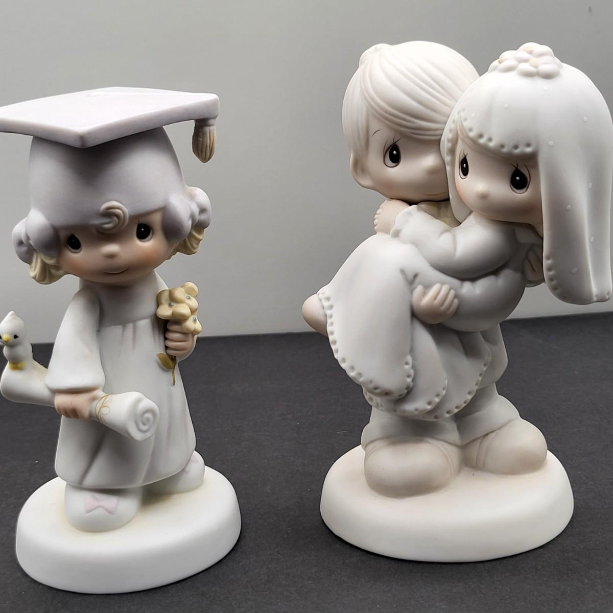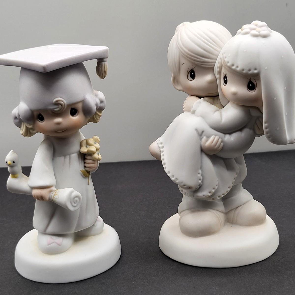 1980 "The Lord Bless You And Keep You" Graduation 5" figurine with bird and flowers. 1982 "Bless You Two" Bride/Groom 5.25" figurine. Made in Taiwan.