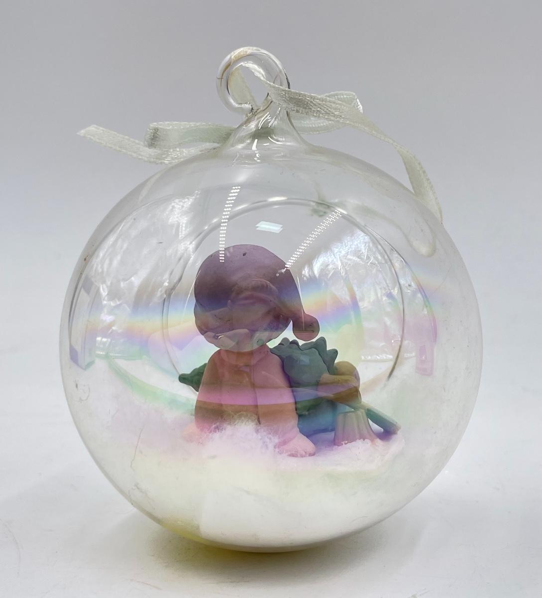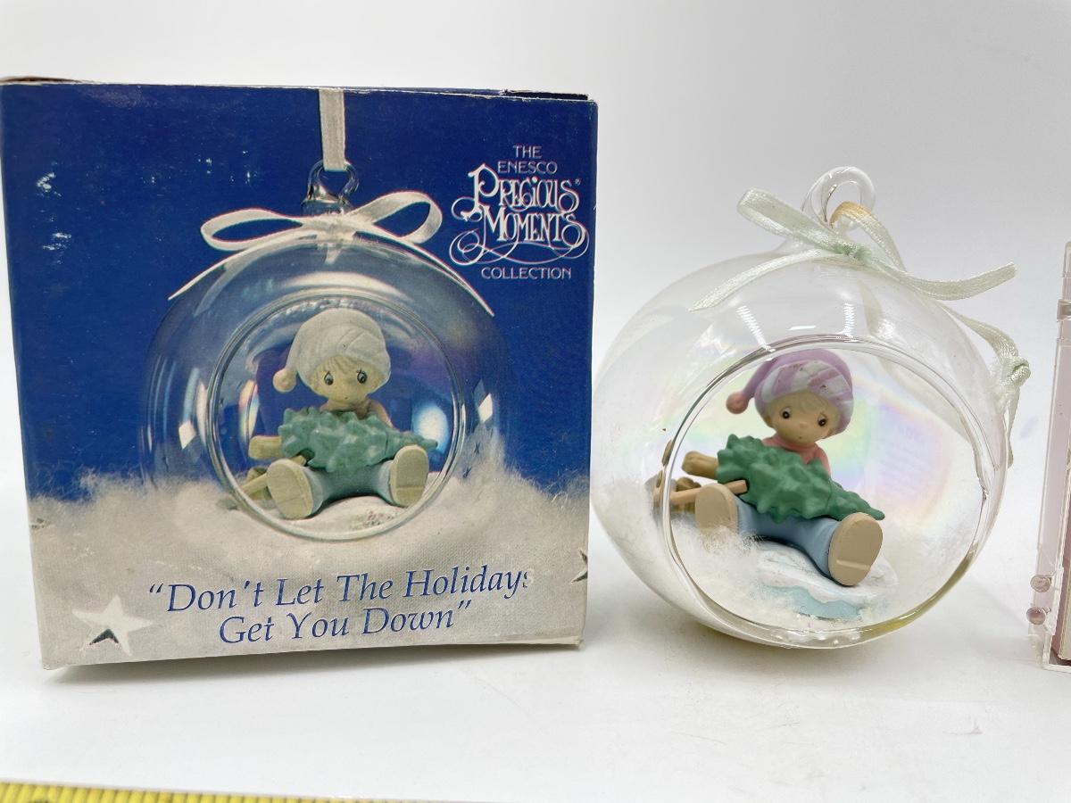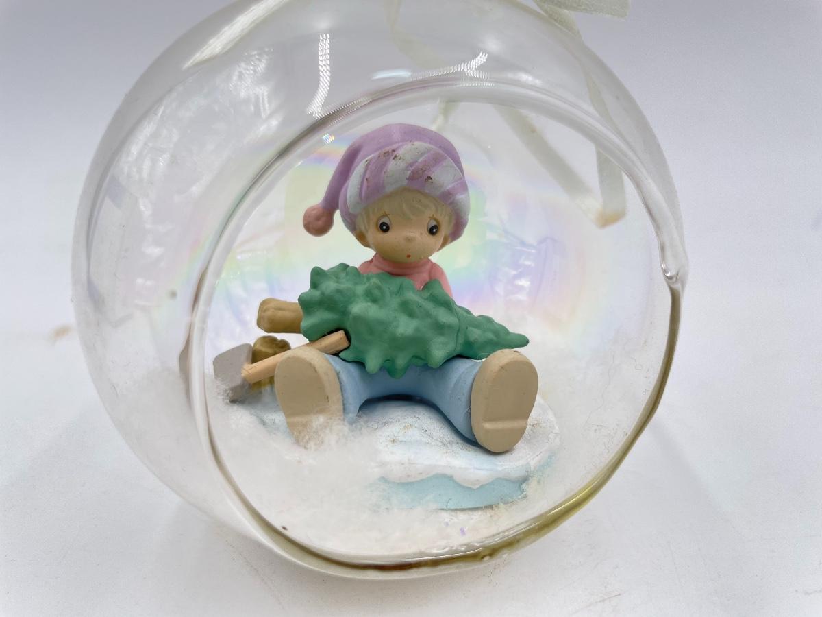 PRECIOUS MOMENTS GLASS BALL ORNAMENT AND THIMBLE