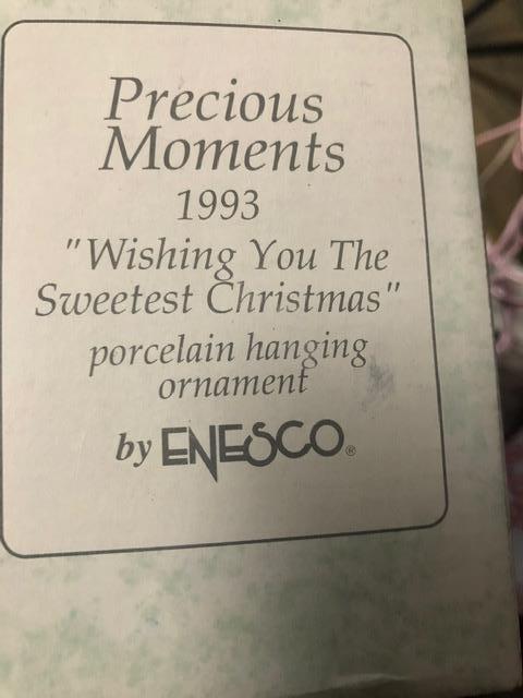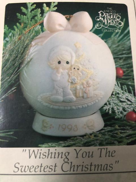 "Wishing You The Sweetest Christmas" Precious Moments Hanging Ornament, Dated 1993,