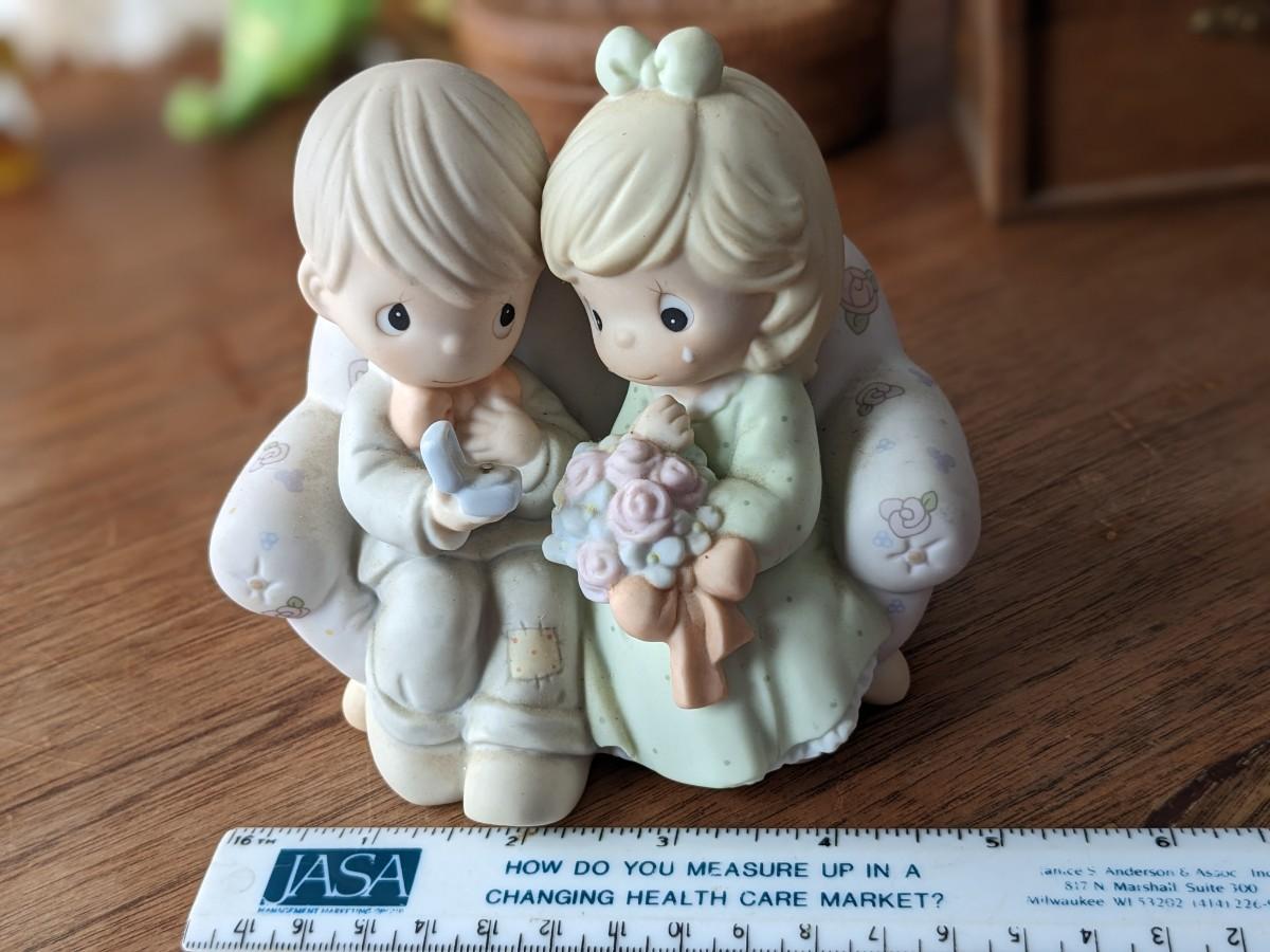 Precious Moments Say I Do Figurine Marriage Proposal Ring Boy Girl on Couch 1996