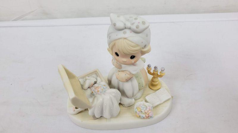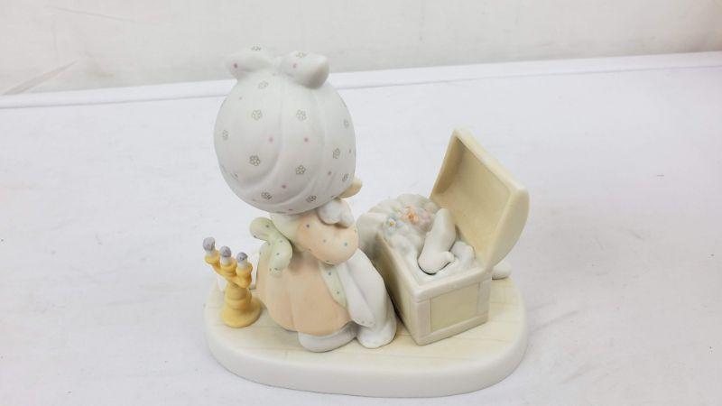 Precious Moments Statue, Girl Looking into Trunk with Tear, 1983, with Box