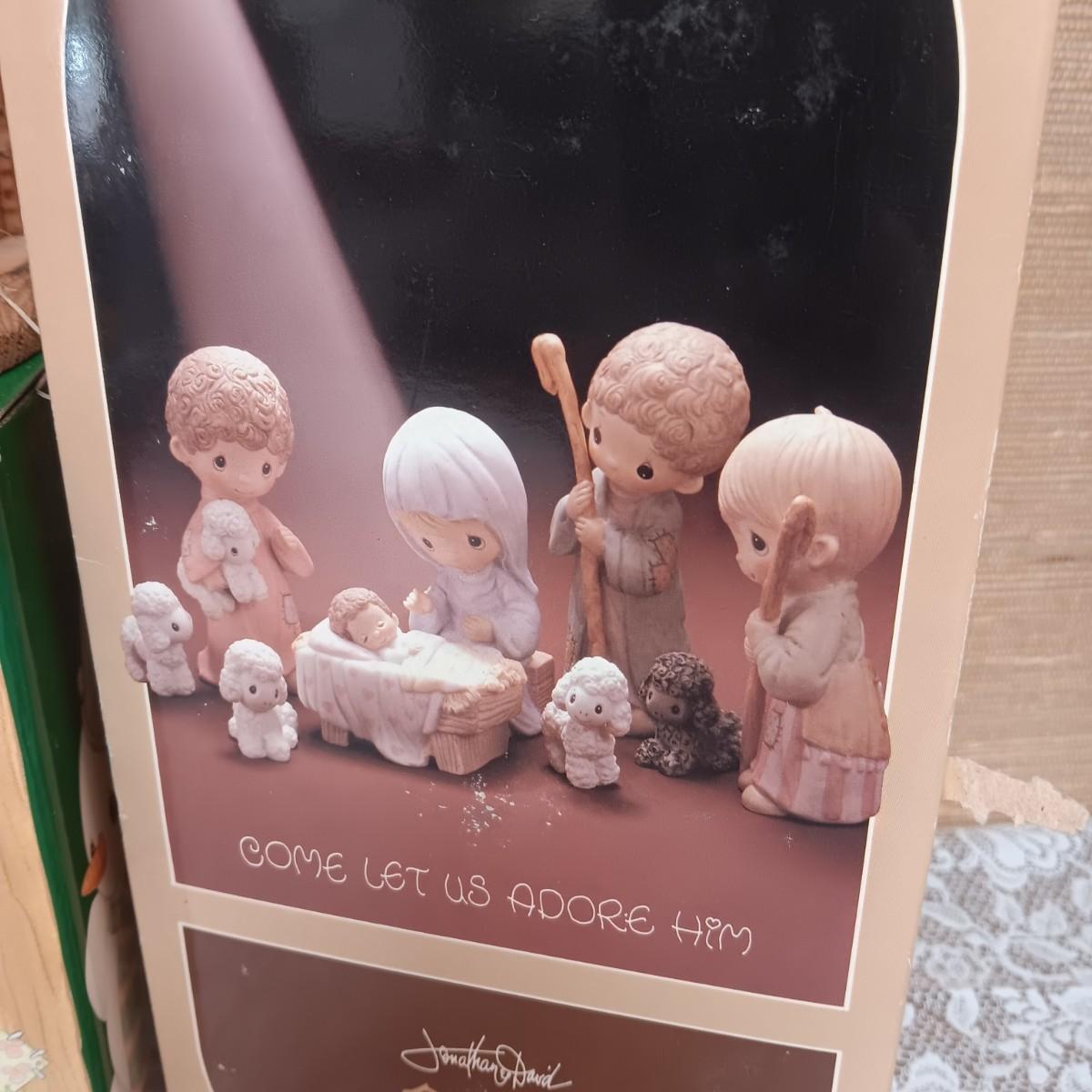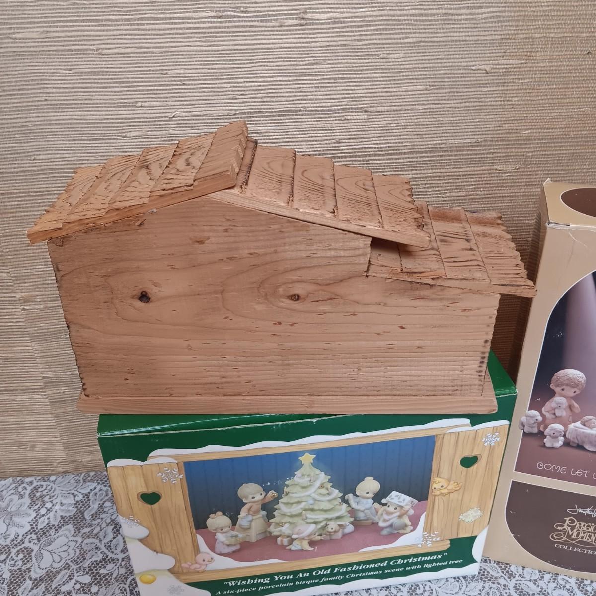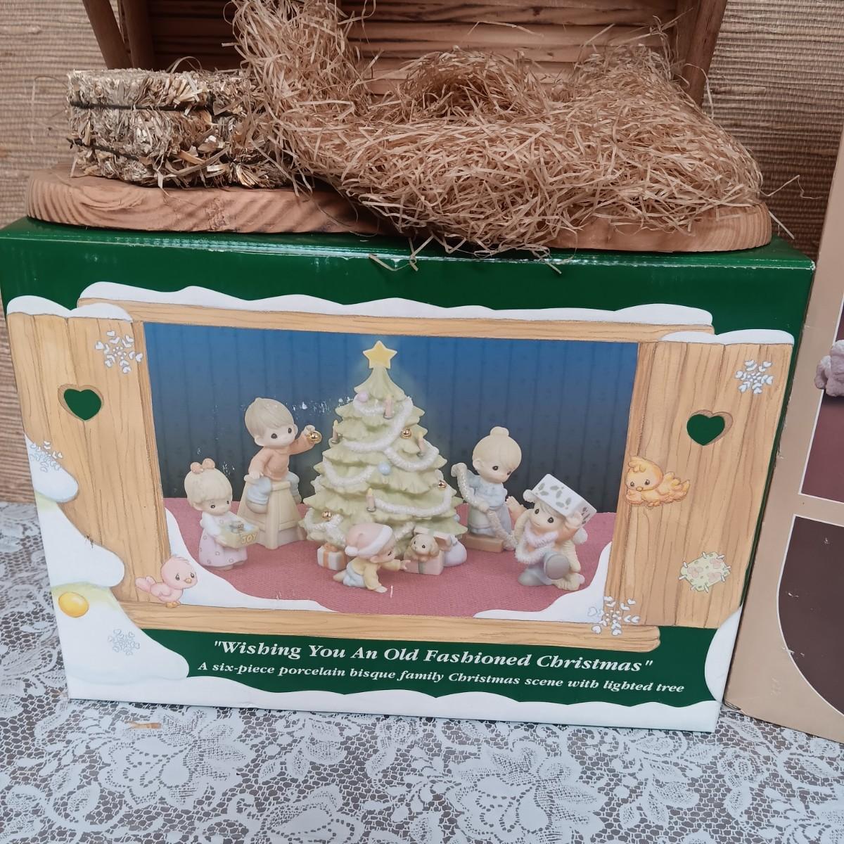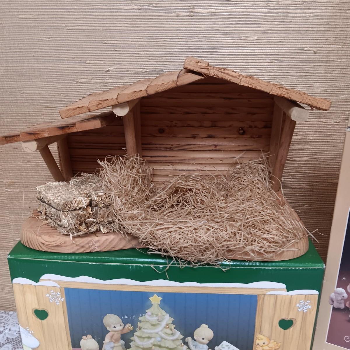 PRECIOUS MOMENTS WOODEN MANGER AND FIGURES PLUS A 6 PC FAMILY CHRISTMAS SCENE