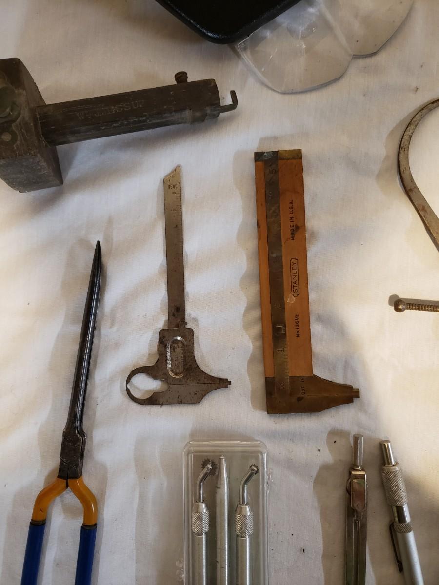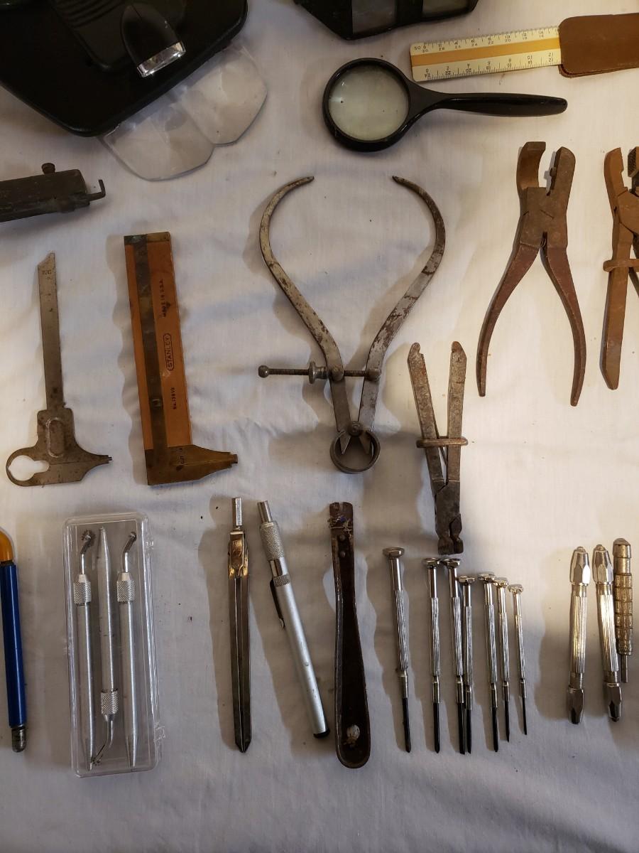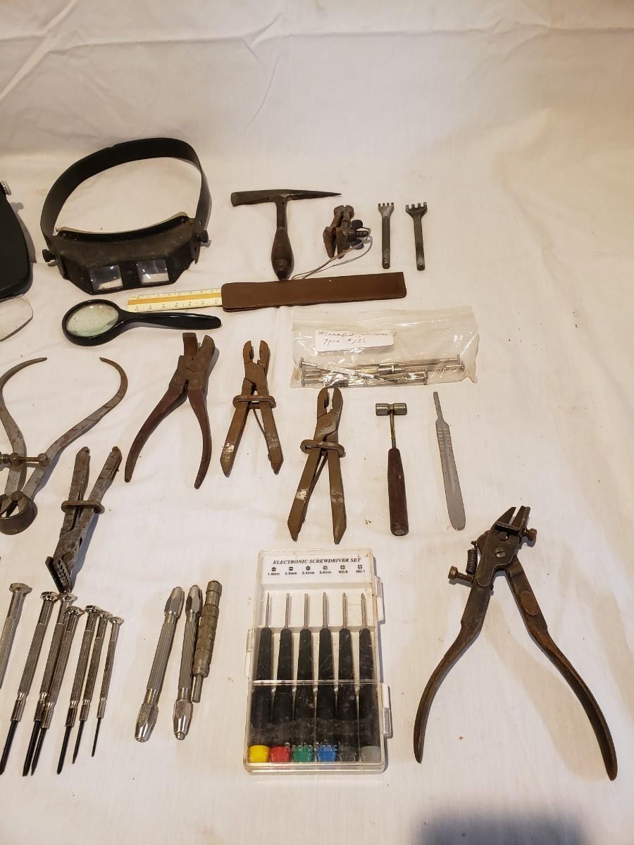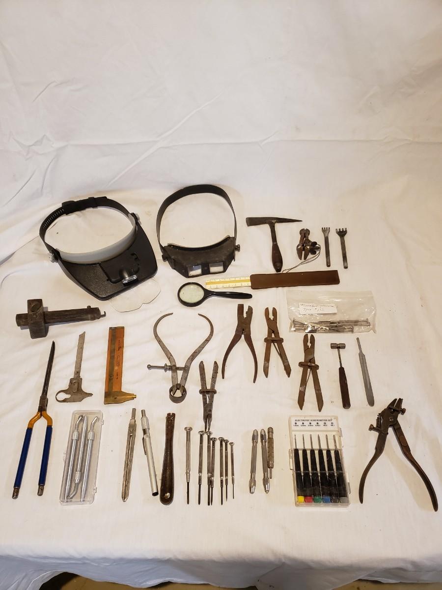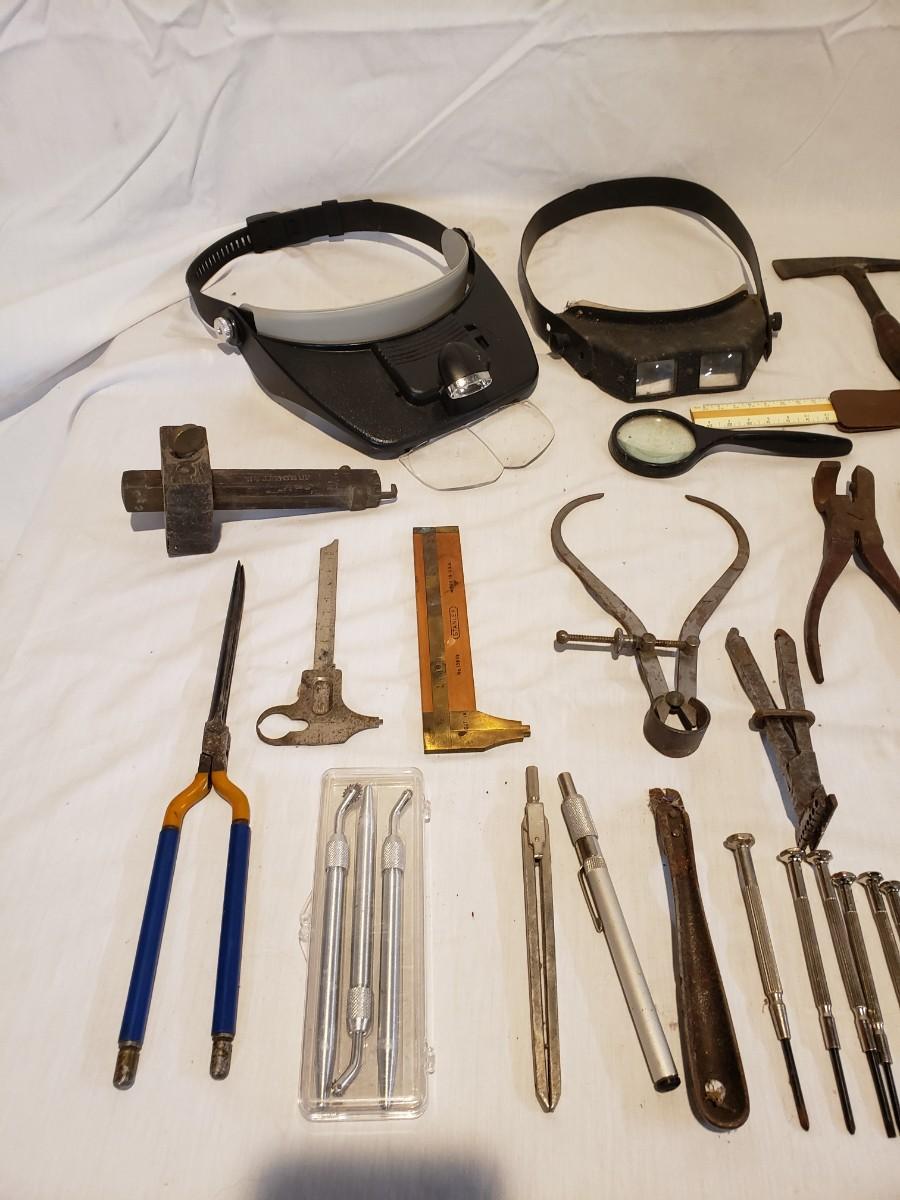 This lot is to fine tune your work area! There are magnifying visors that light up, electronic screwdriver set, a Stanley ruler and much more. Many of the metal tools are rusty, but appear to still work. The other pieces are still shiny and appear to work well. Shipping available.