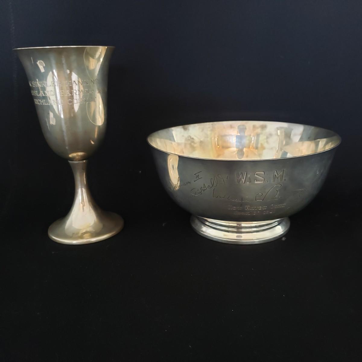 These two Sterling items are awards from Connecticut 1940 and Richland County 1954, see pictures. The cup measures approximately 3" x 7"H.