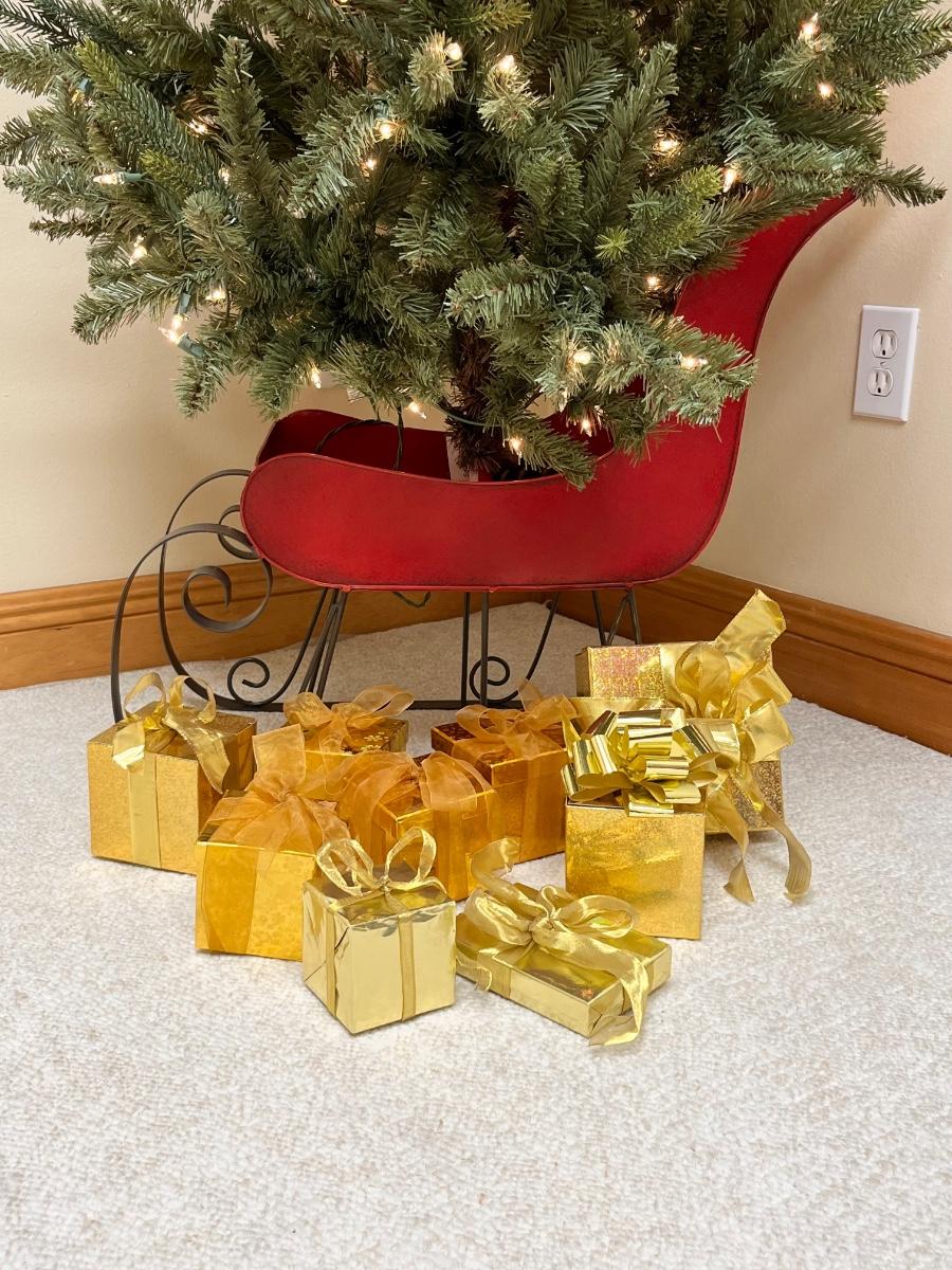 Gift wrapped empty boxes included ~ 6.5’ including sleigh