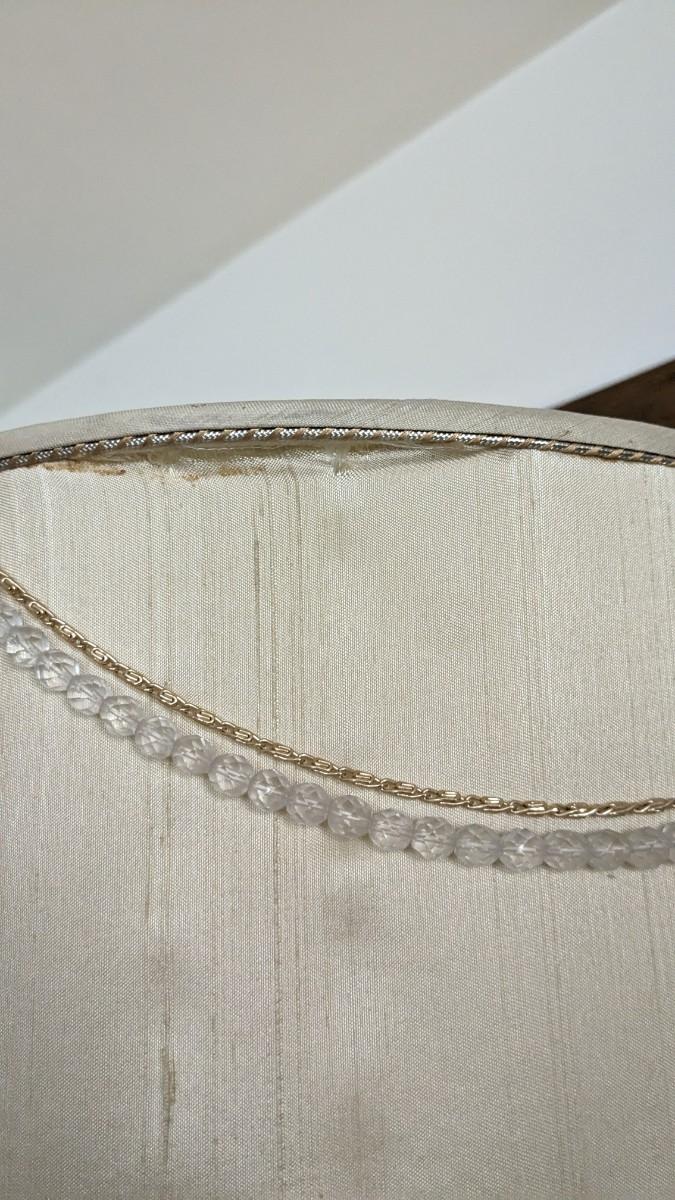 a STUNNING solid brass base with intricate Edwardian style details and lovely milk glass shade with extra beaded top shade. Also includes a similarly designed silver tone table lamp with milk glass shade. Brass lamp needs rewired and is truly breathtaking in person, silver tone piece tested operable. **We are not able to crate and ship but will happily work with your shipping company of preference. Arrangements for shipping MUST be made within 2 weeks from the close of auction at which point it will be considered forfeited without refund.**