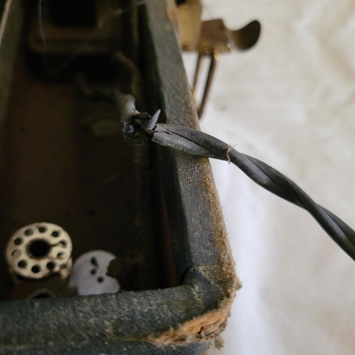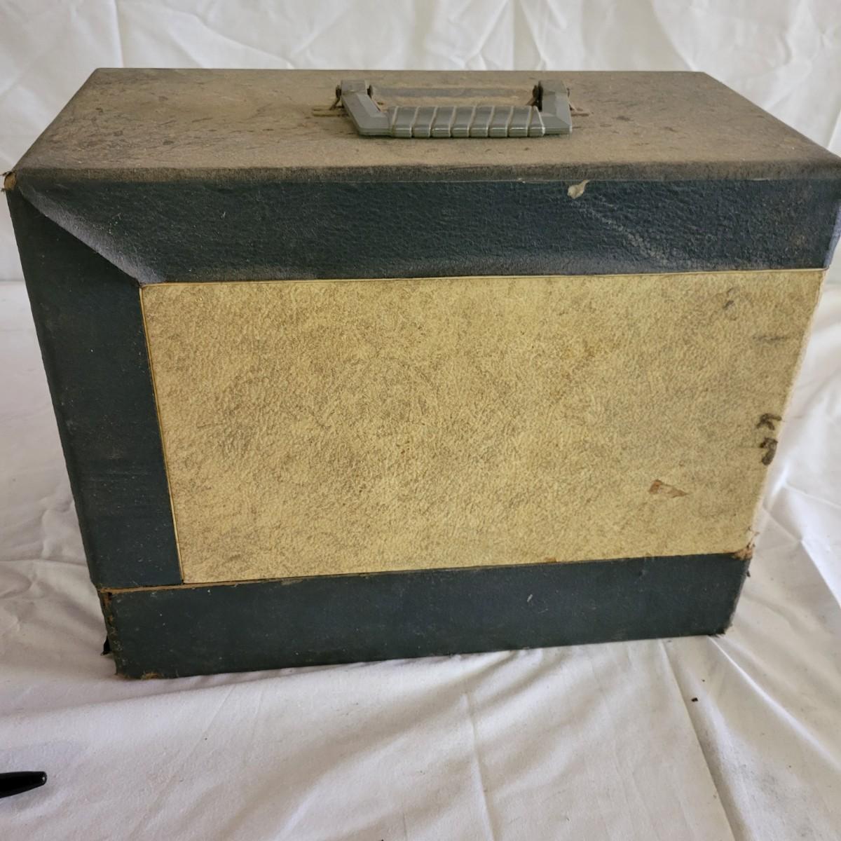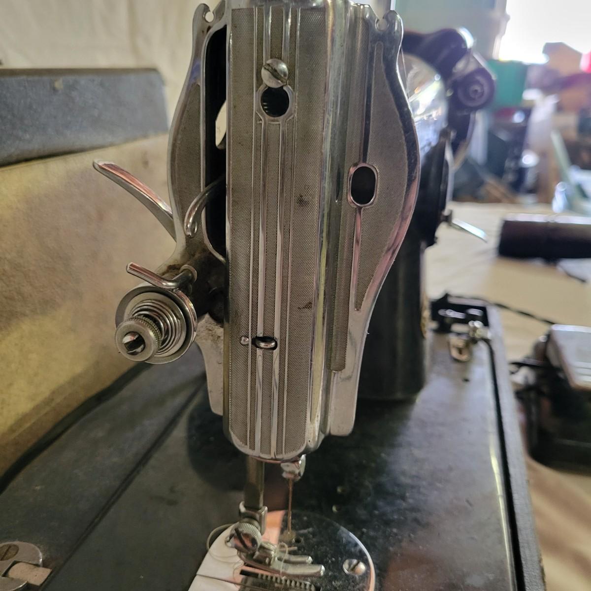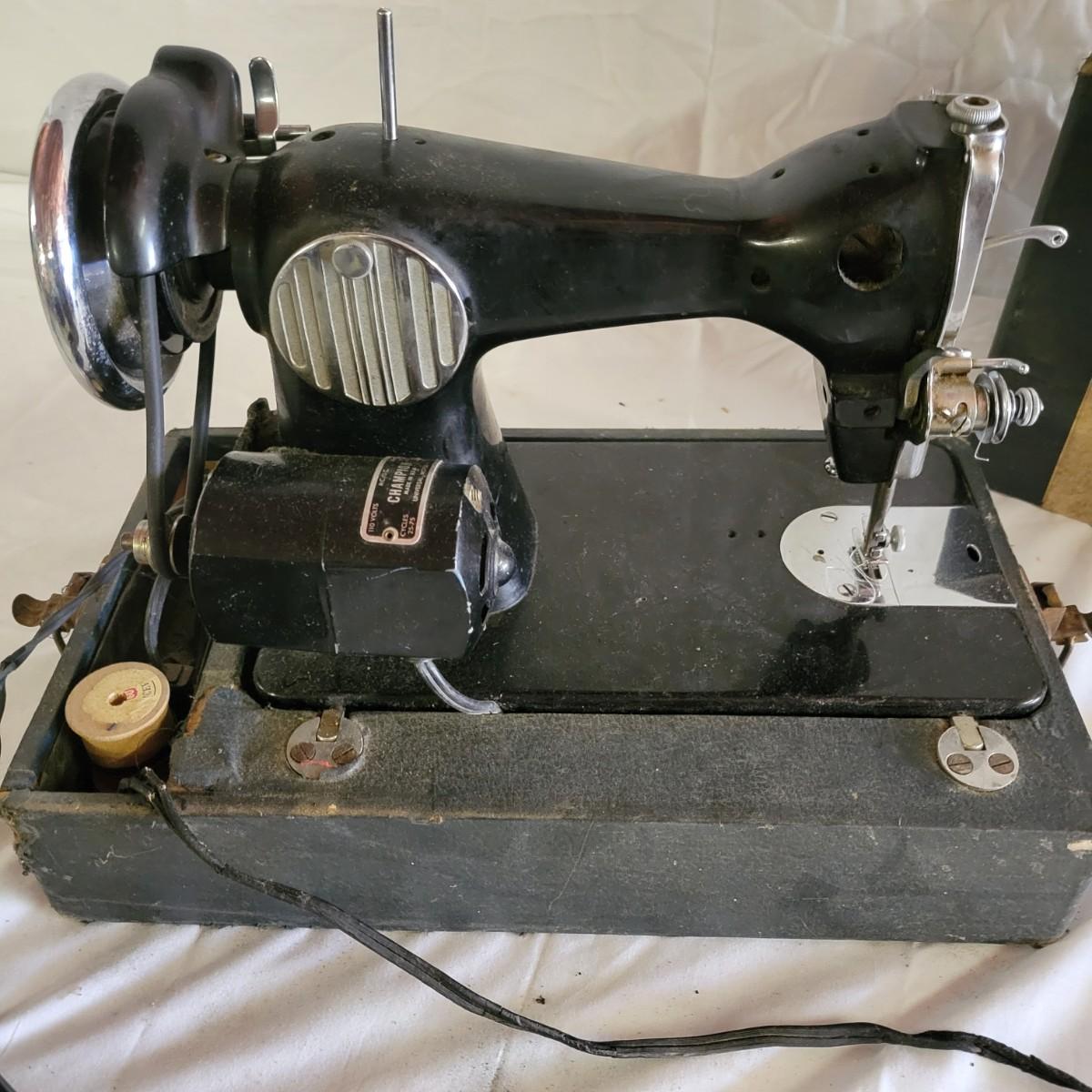 A vintage Premier sewing machine that powered on when plugged in. The wiring is a bit old and frayed, but could easily be refurbished. This sewing machine is in its original carrying case and turned over smoothly when turned on. It includes the original foot pedal and the case measures approximately 15.5" x 9.5" x 12"H. Local pickup only
