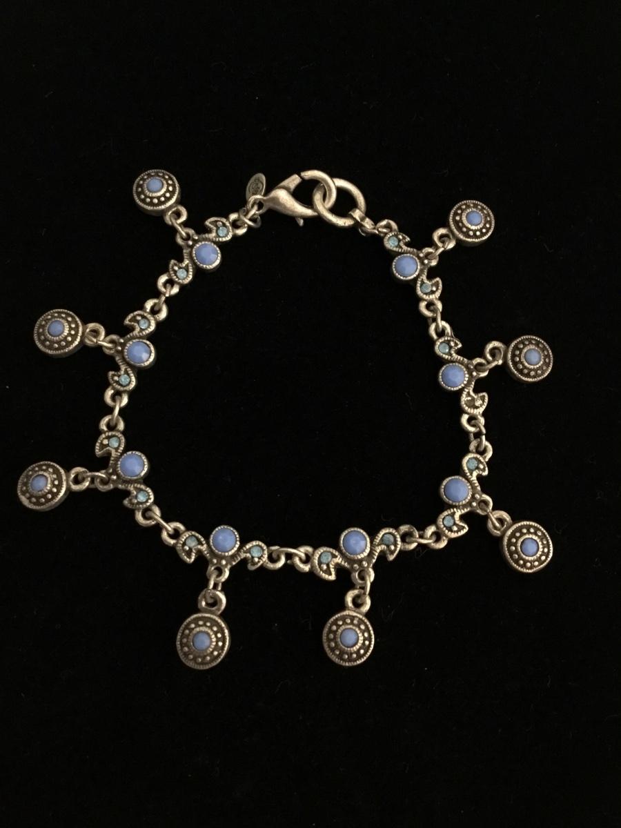 Premier design Silvertone bracelet with blue agate stone charm bracelet
