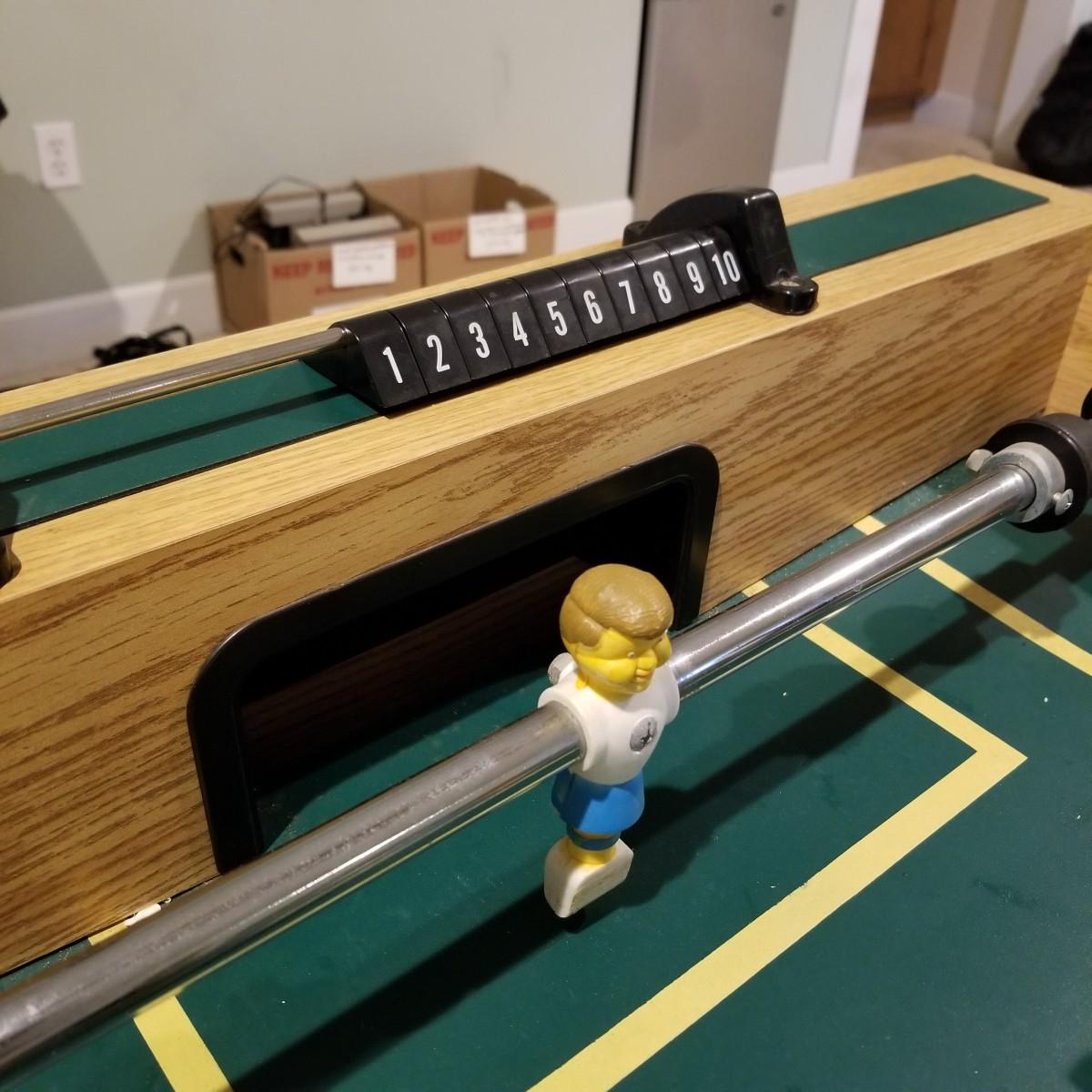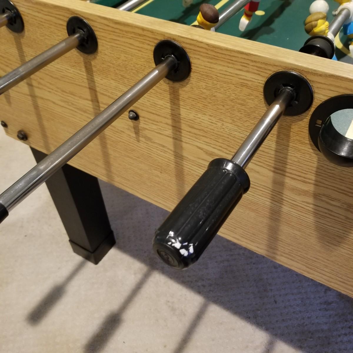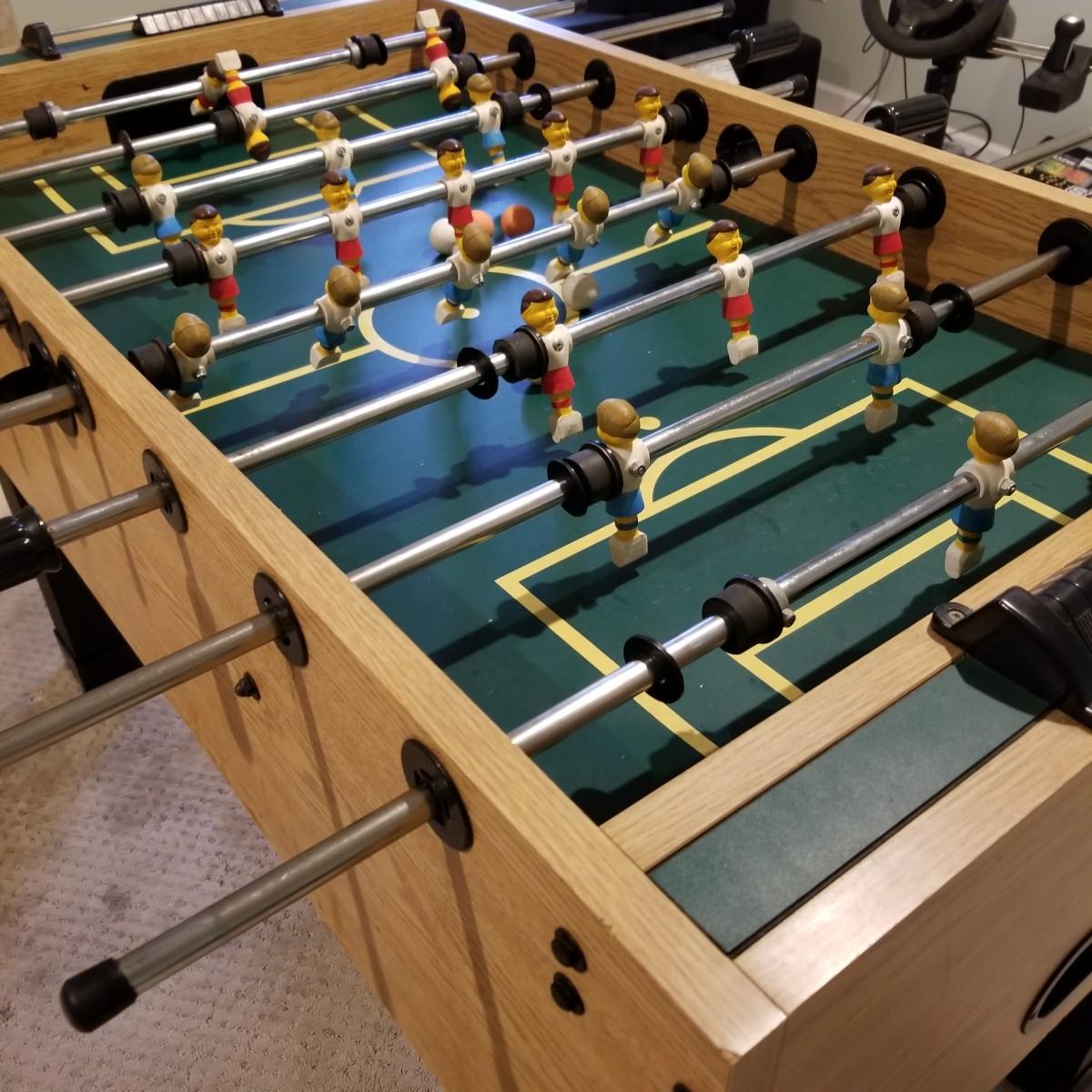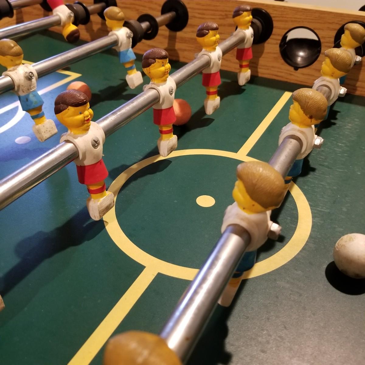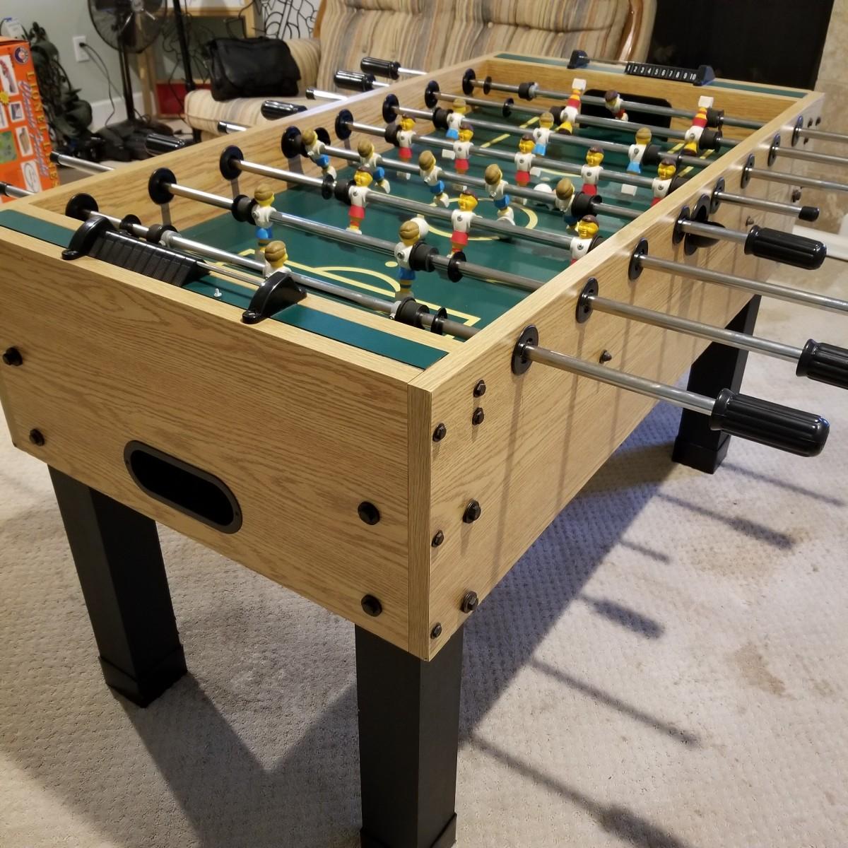 The classic style foosball game. All handles and players intact. Some minor wear on edges and legs. Score counters all in place. Local pickup only. Measures approximately 54" x 29" x 34". Winning bidder must bring assistance to move and load this item due to its weight and size. Item will also need to be moved up a flight of stairs.