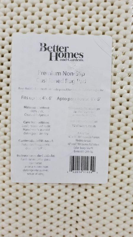 Premium Non-Slip Cushioned Rug Pad, Fits up to 4'x6', Ivory - New