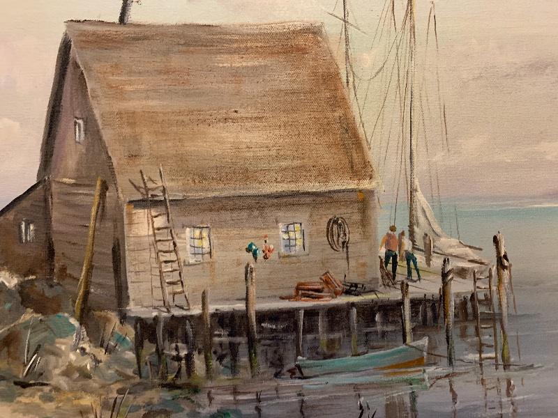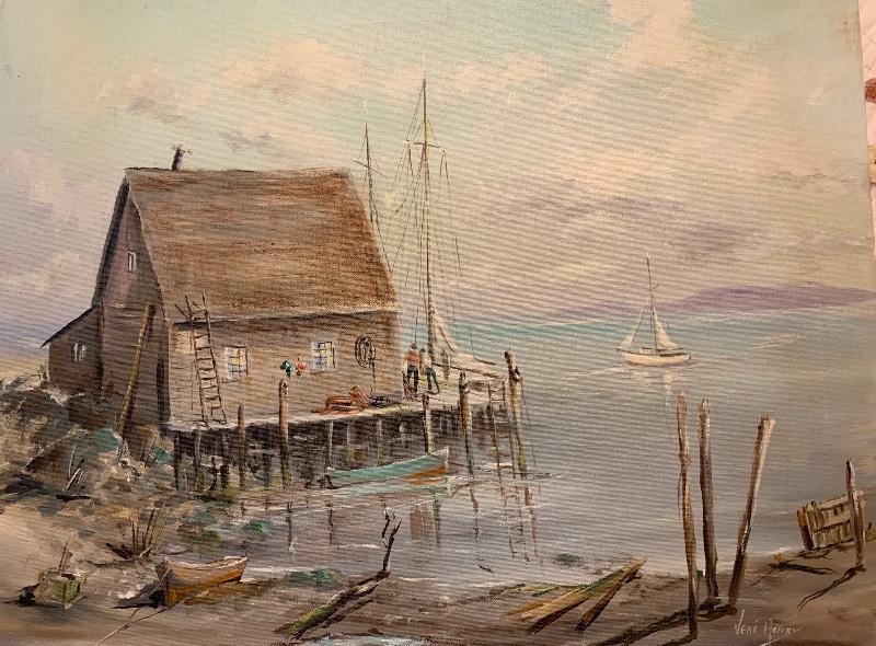 Pre-Owned Vere' Henry Painting Boat/Fishing Shack 24" x 20"