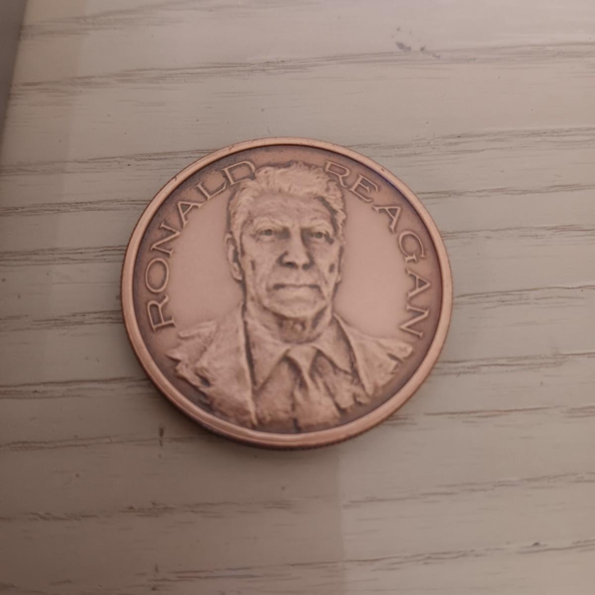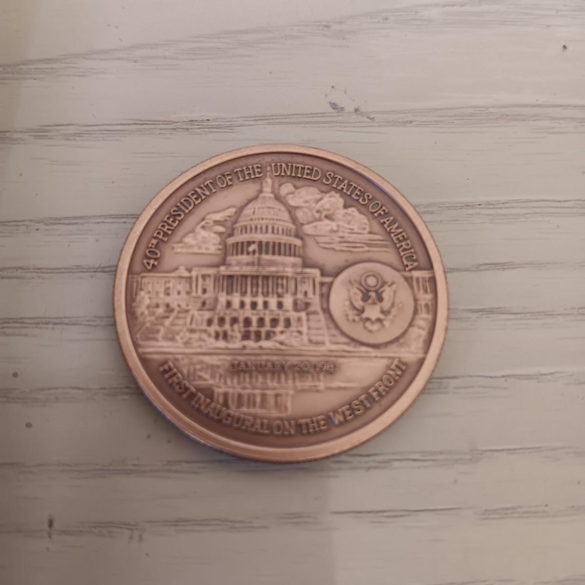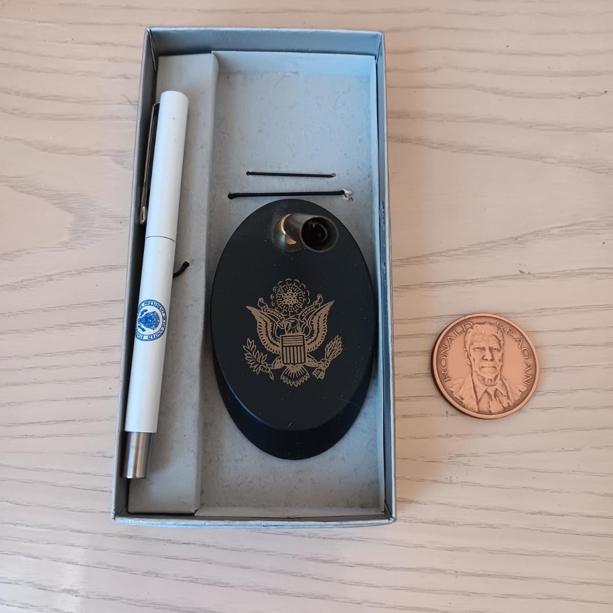PRESIDENTIAL SEAL PEN HOLDER AND RONALD REAGAN MEDAL