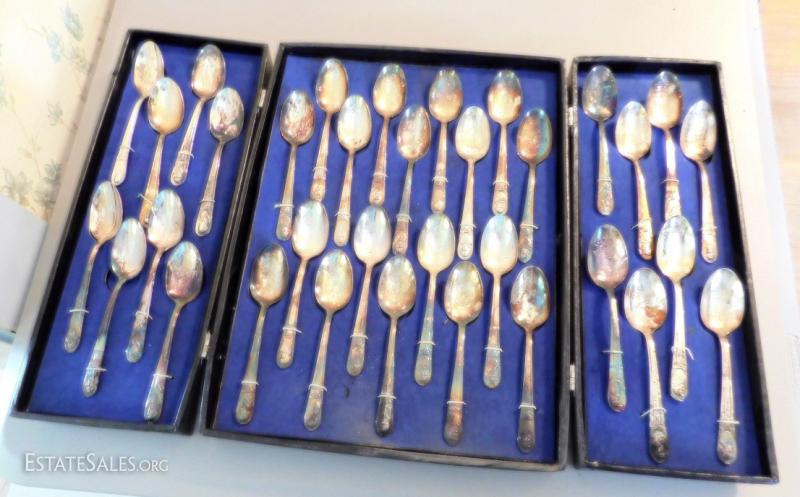 Wm Rogers silver plate 34 pc commemorative spoon collection in original tri-fold case. Spoons have been stored and not displayed. Rare full set.