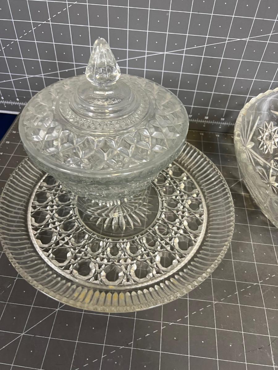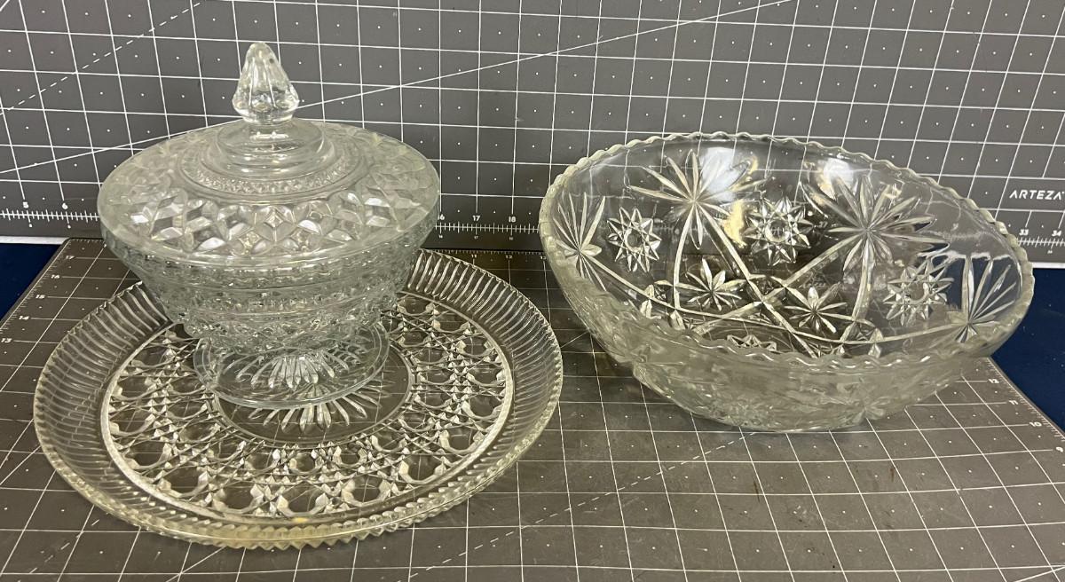 Press Cut Glass Ware Serving Items (3)