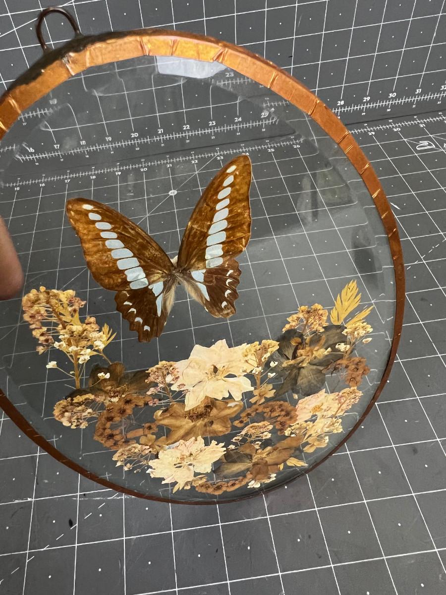 Pressed Flower & Butterfly Glass Panel Sun Catcher