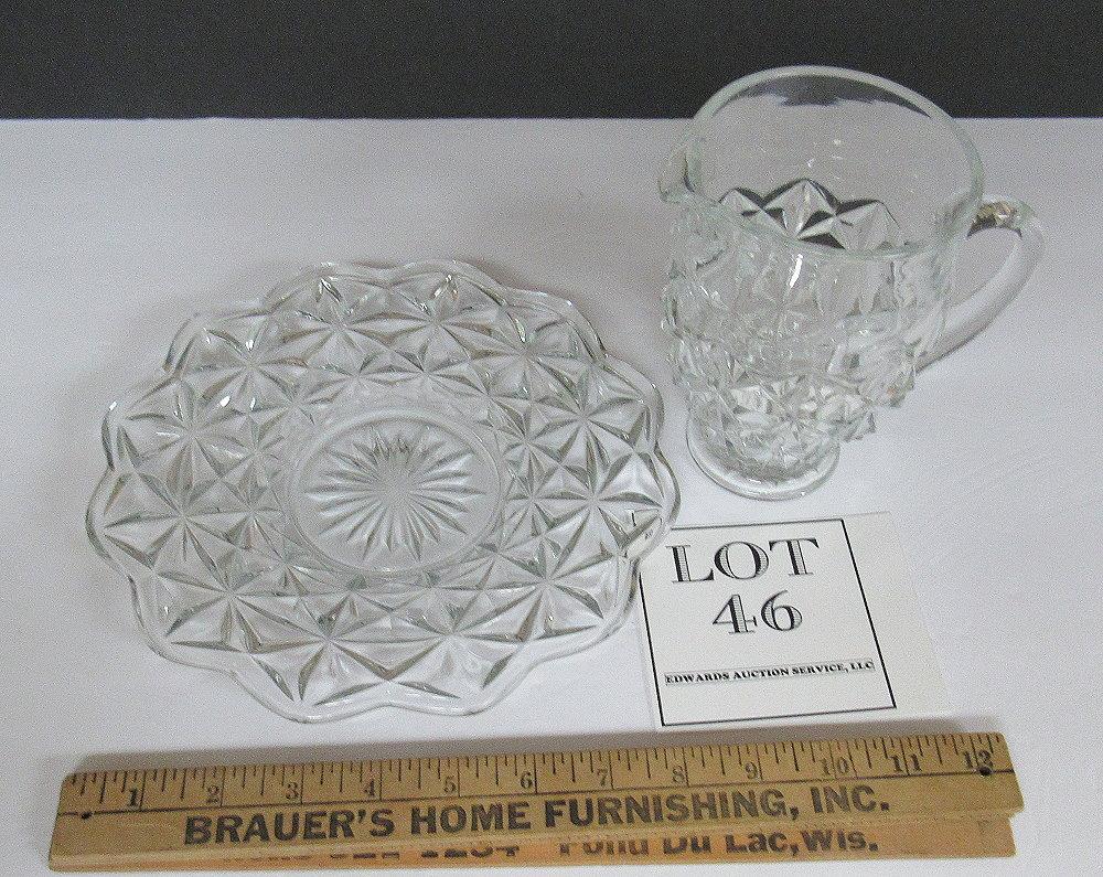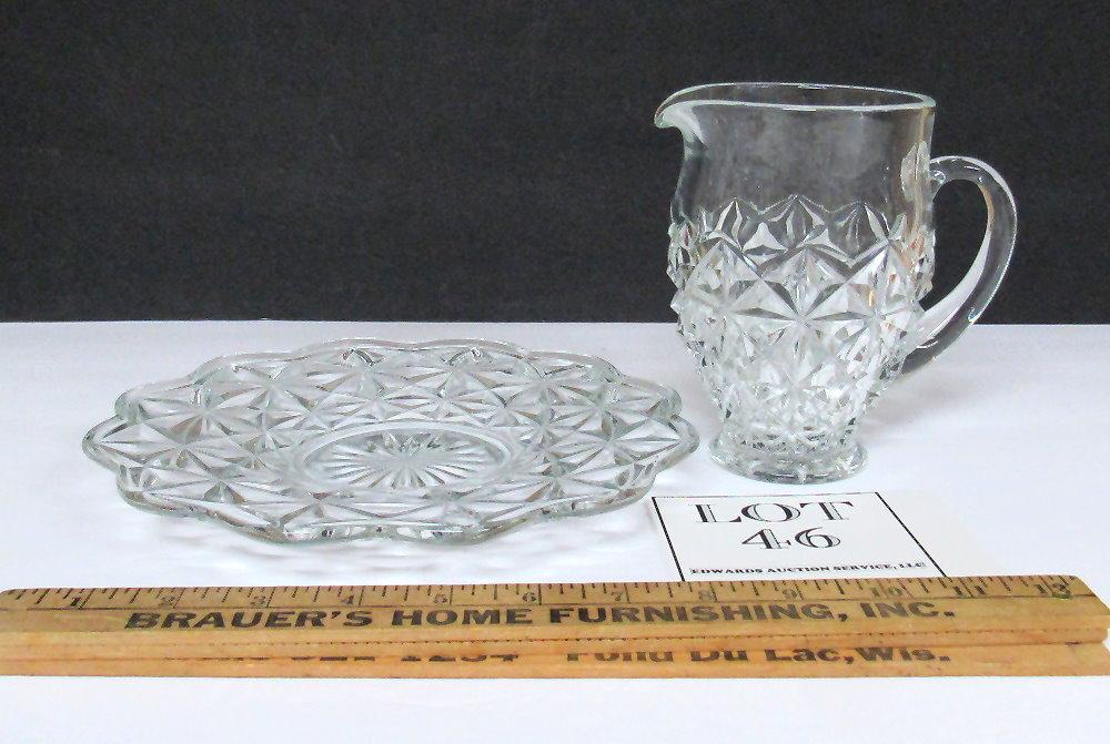Pressed Glass 5 1/2" Small Pitcher and 8 1/2" Matching Plate - Think Christmas Milk and Cookies!