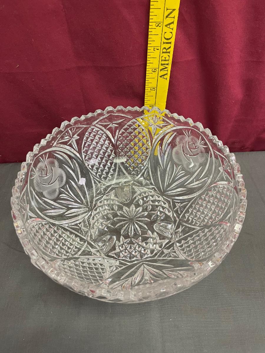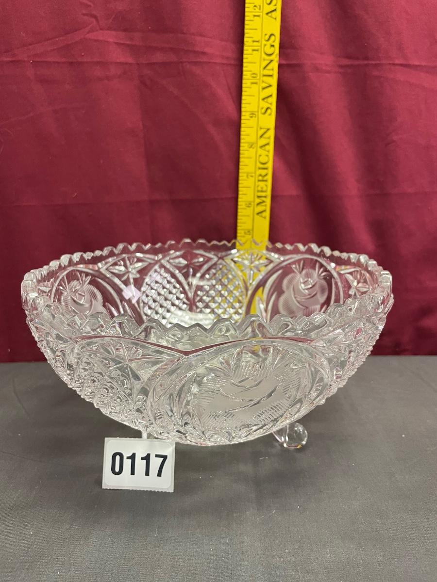 Pressed glass bowl-etched roses/footed pedestal