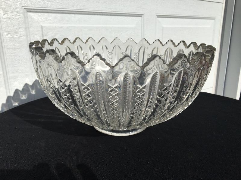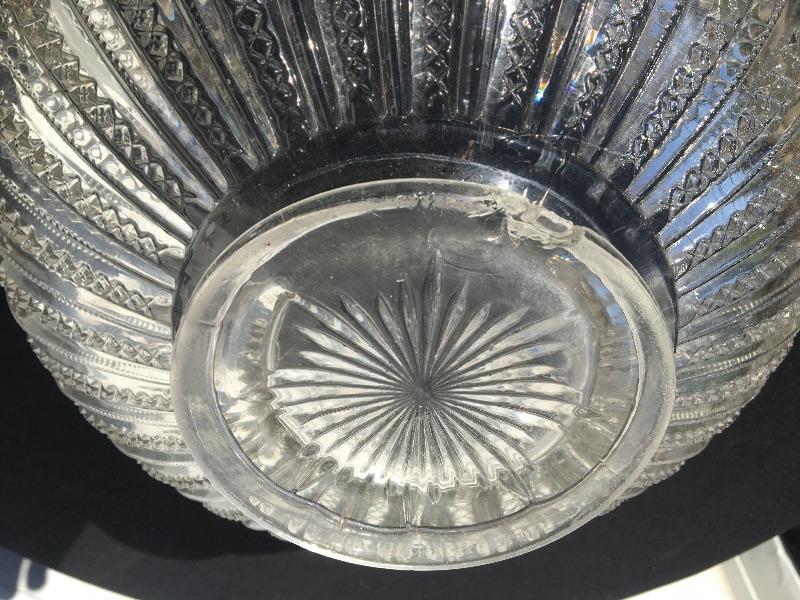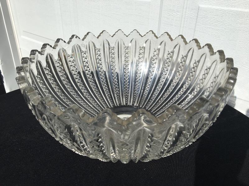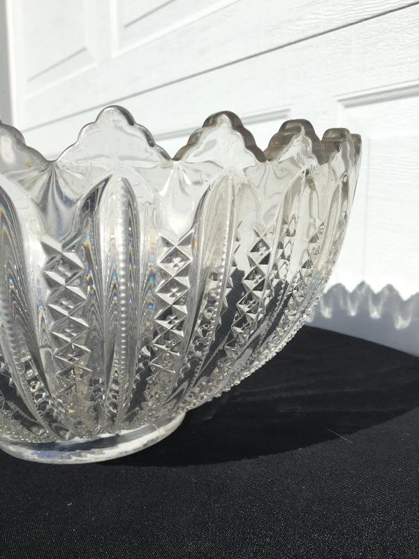 Pressed glass deco style large punch bowl 14”w x 7.5h